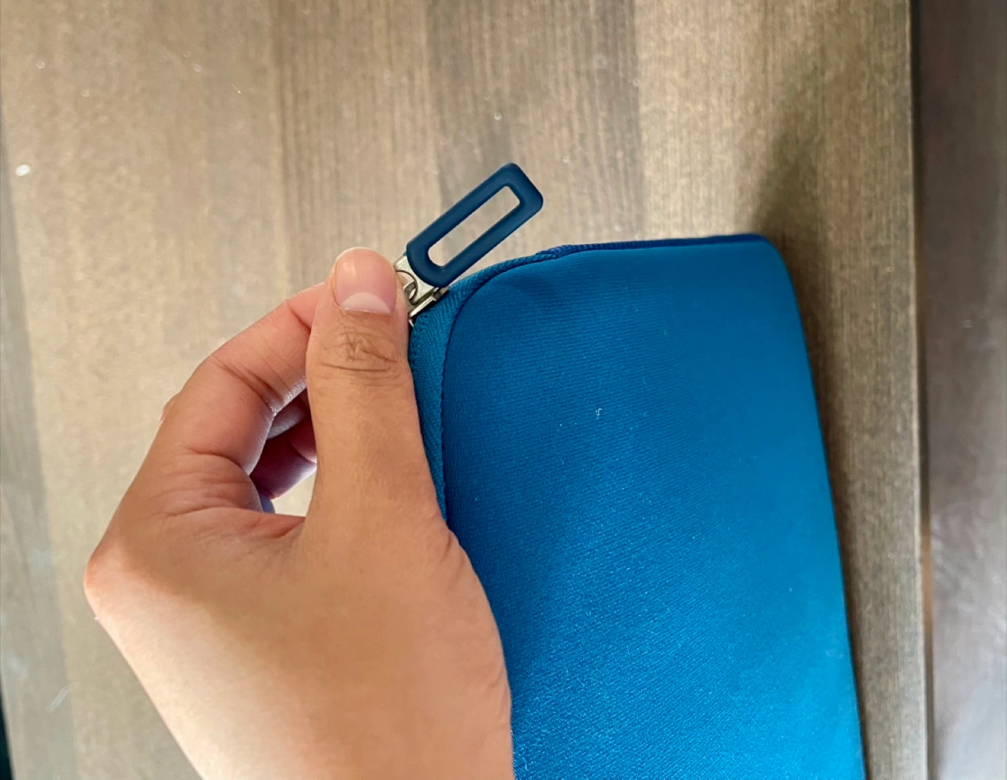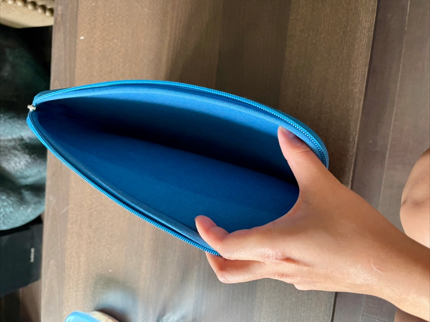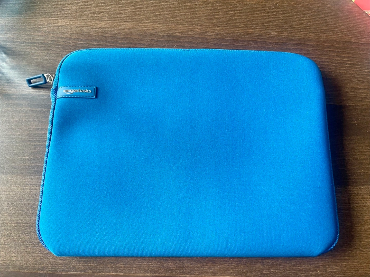 Blue laptop sleeve. Soft neoprene material. Zipper closure. Excellent protection for your 13-inch laptop.