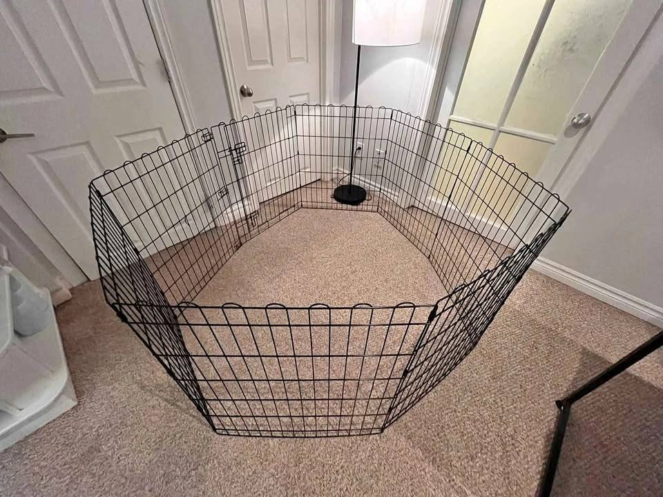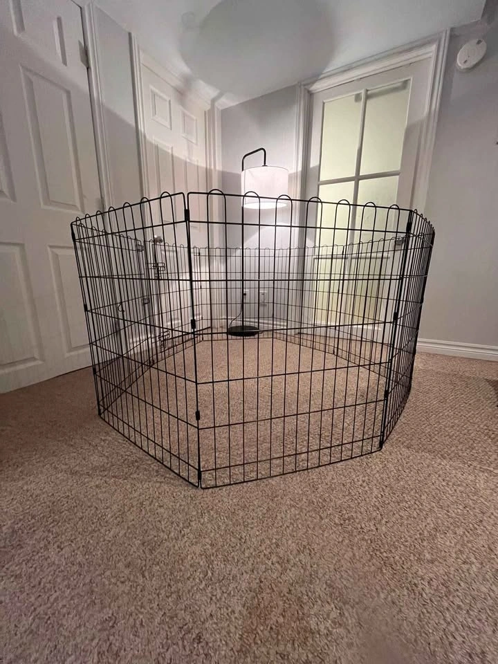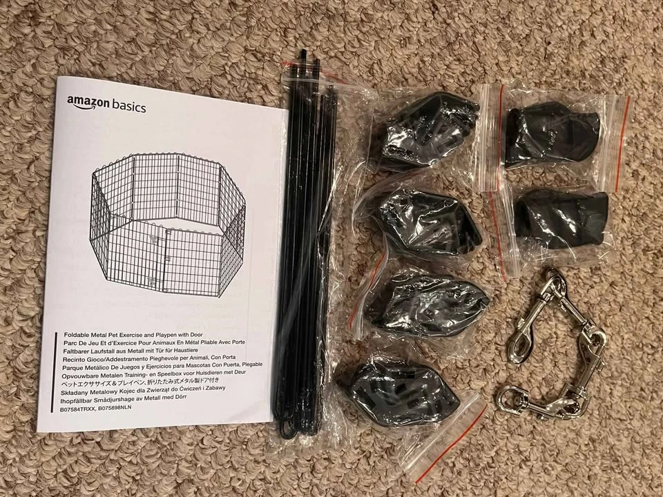 Give your pets a safe, spacious, and easy-to-setup area to play or rest with this Amazon Basics 30-inch foldable metal playpen. Ideal for small to medium dogs, puppies, or even rabbits, it’s perfect for both indoor and outdoor use. Dimensions & Specs: Height: 30 inches (76 cm) 8 panels forming an octagonal shape Includes door with dual latches for easy access Max pet height: up to 23 inches (small–medium dogs) Foldable design – easy to assemble, fold, and store Durable black metal frame – sturdy and rust-resistant Includes accessories – ground anchors, corner protectors & clips No tools required – setup in minutes Perfect for indoor or outdoor use Brand new – pulled from a liquidation pallet Available assembled or unassembled Let me know if you're interested!