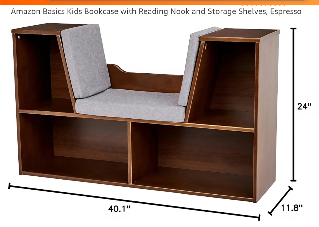 Selling a gently used Amazon Basics Kids Bookcase with Reading Nook. It's in great shape and perfect for a kid's room or play area. The espresso finish looks great and the reading nook is a cozy spot for your little one to enjoy their favourite books. The dimensions are 40.1" x 11.8" x 24".