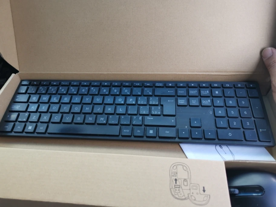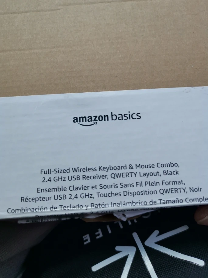 Selling an Amazon Basics full-sized wireless keyboard and mouse combo. It comes with a 2.4 GHz USB receiver and has a QWERTY layout. The set is in black and includes the original box.