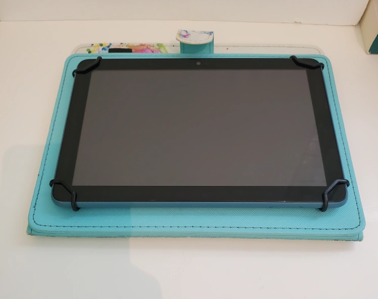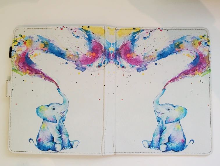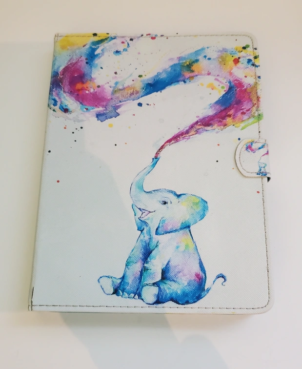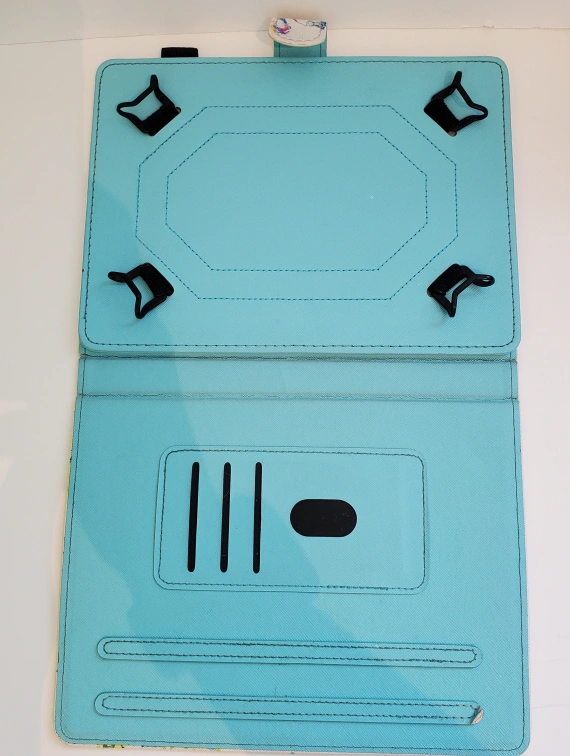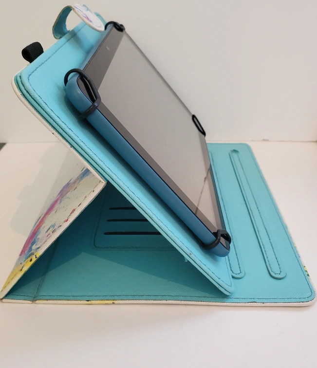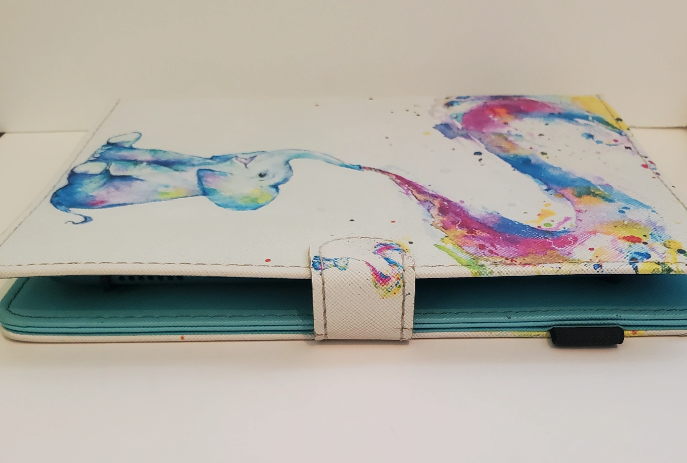 Fire HD 8 Tablet, 8" HD display, 32 GB, (2020 release), designed for portable entertainment, Twilight Blue Cover - Universal 8.0" Tablet Case, Wallet Stand Cover w/Credit Card Slots, Elephant Baby See photos for condition of cover, cracks on fold edges. Works fine, just never use it.