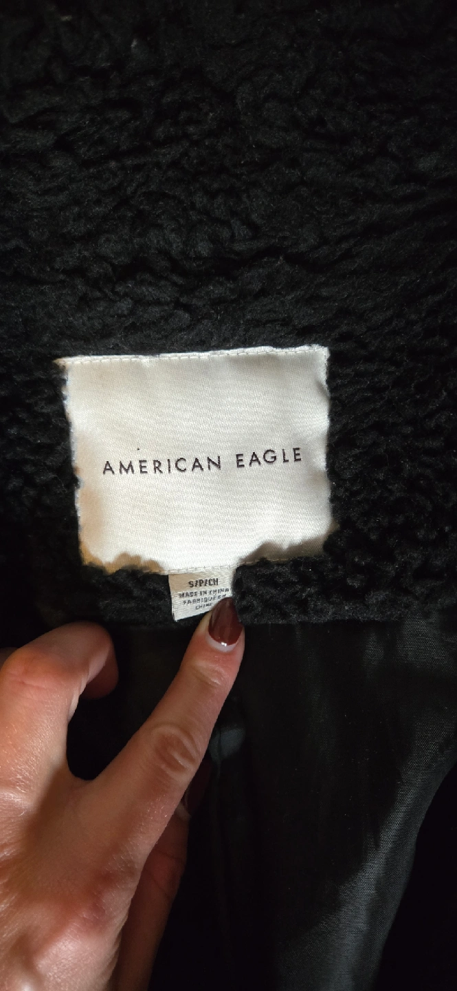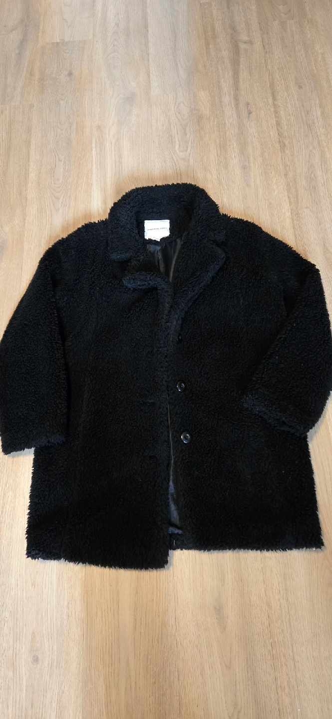 Cozy black coat from American Eagle! It's a size small and perfect for keeping warm on chilly days. The material is super soft and comfy. Two front pockets.