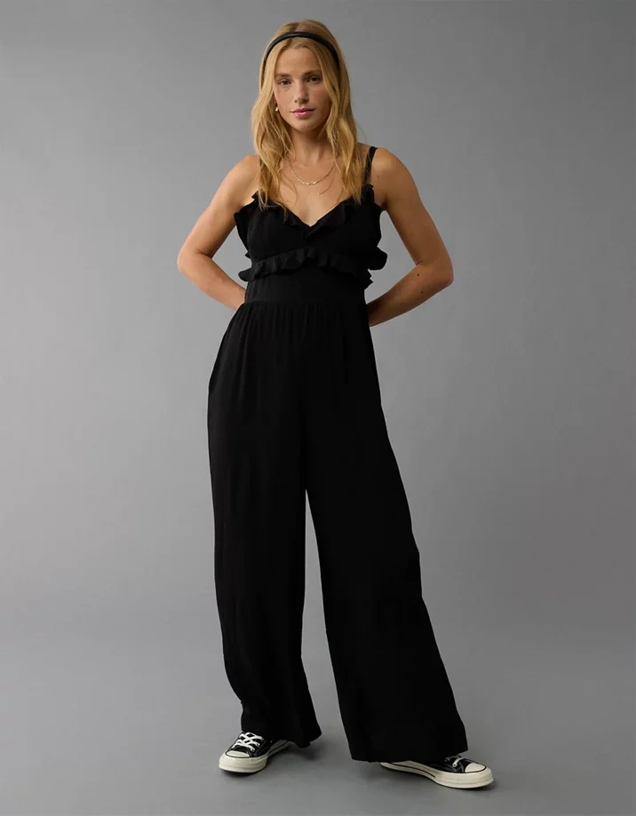 Selling a cute American Eagle jumpsuit in black! It's a size small and in great condition. Perfect for a casual day out or dressing up for an evening event. The material is lightweight and comfy, making it ideal for warmer weather I'm just too short for it unfortunately ๐ญ