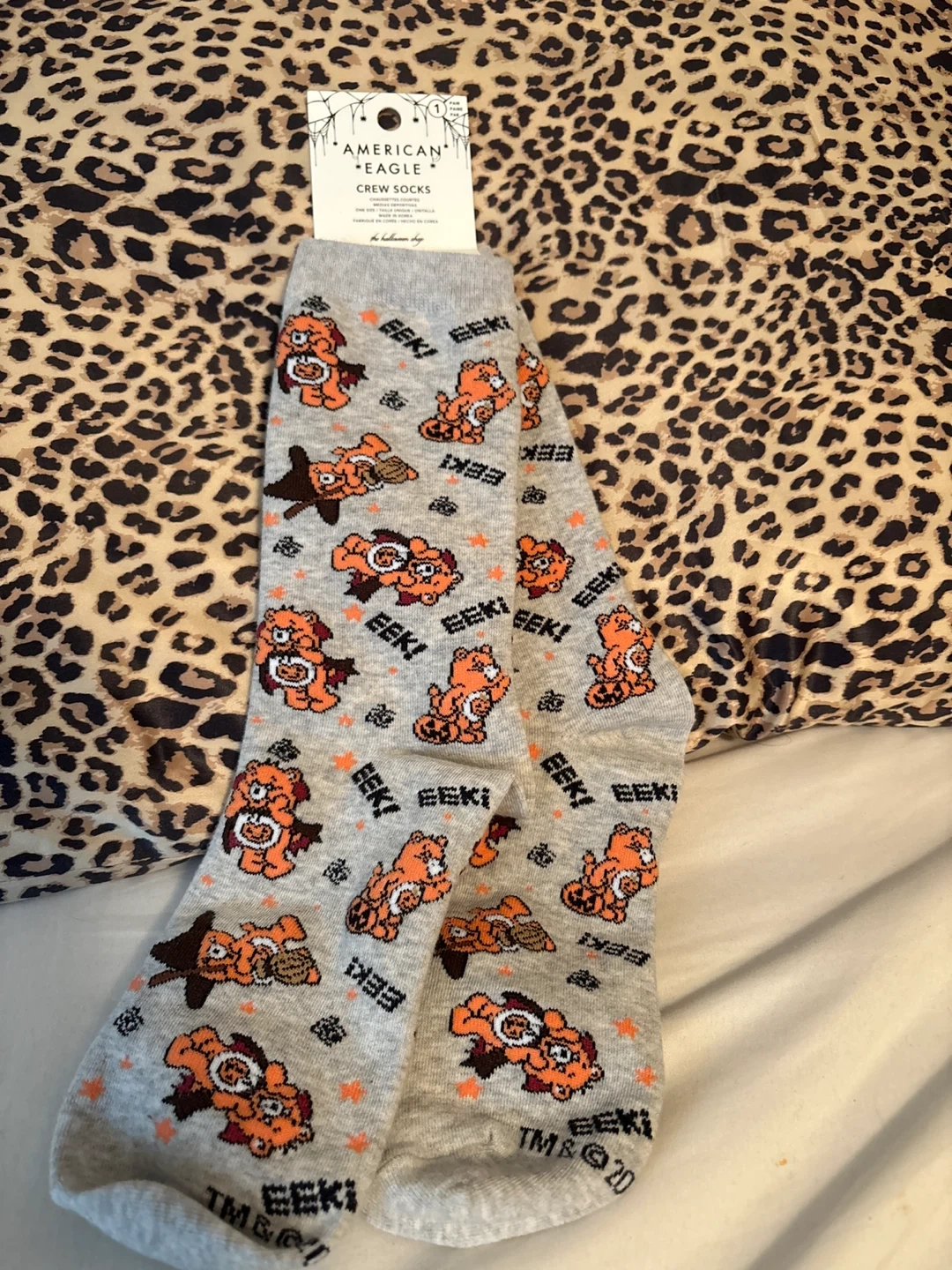 Cute American Eagle crew socks featuring the 'EEKI' pattern! These are in great condition and ready to keep your feet cozy and stylish