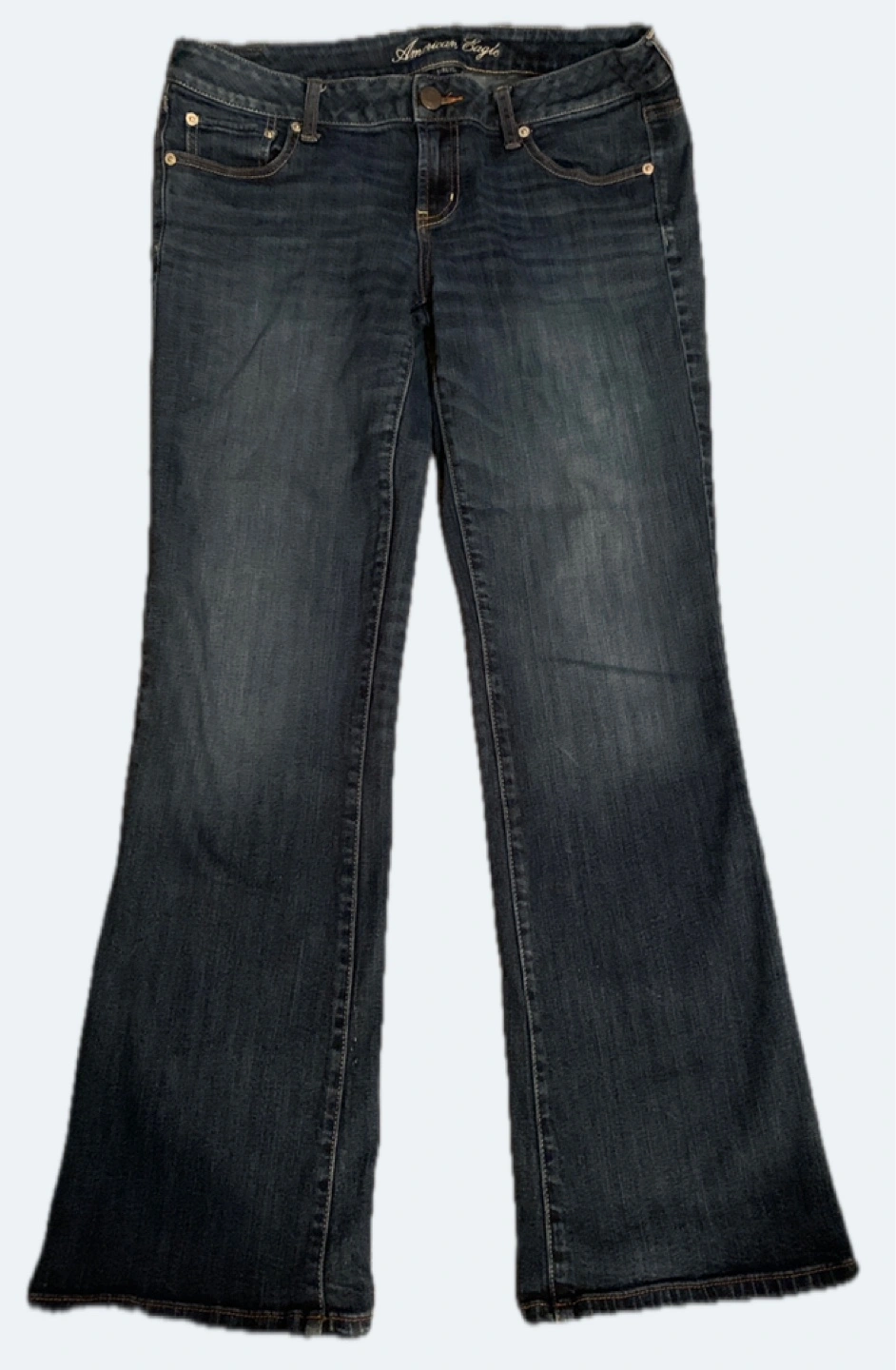 American Eagle Favorite boyfriend Size 14 Long slight flare bootcut soft denim. Features five pockets and a zipper fly. The jeans have a distressed look. No rips or tears great condition. Smoke free, cat friendly home. Asking 50 percent less than purchased. Pick up in St. Catharines.
