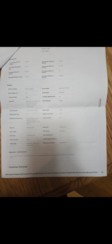 Selling an American Standard Elevation Two-Piece 4.8 Lpf Extra Tall Height Elongated Toilet with Slow Close Toilet Seat! It's in new condition. Never used. We bought a different toilet. Originally bought for $358.00, it's a steal! Features include: - Extra Tall (18"-20") bowl height - Vitreous China material - Slow Closing seat shape - WaterSense labeled toilet Perfect for any bathroom renovation!