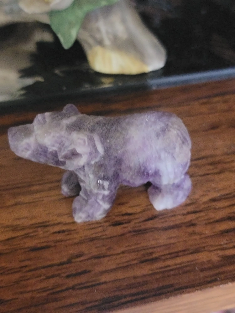 A cute little amethyst bear figurine! It's a lovely shade of purple and would look great on a shelf or desk. It's in great condition