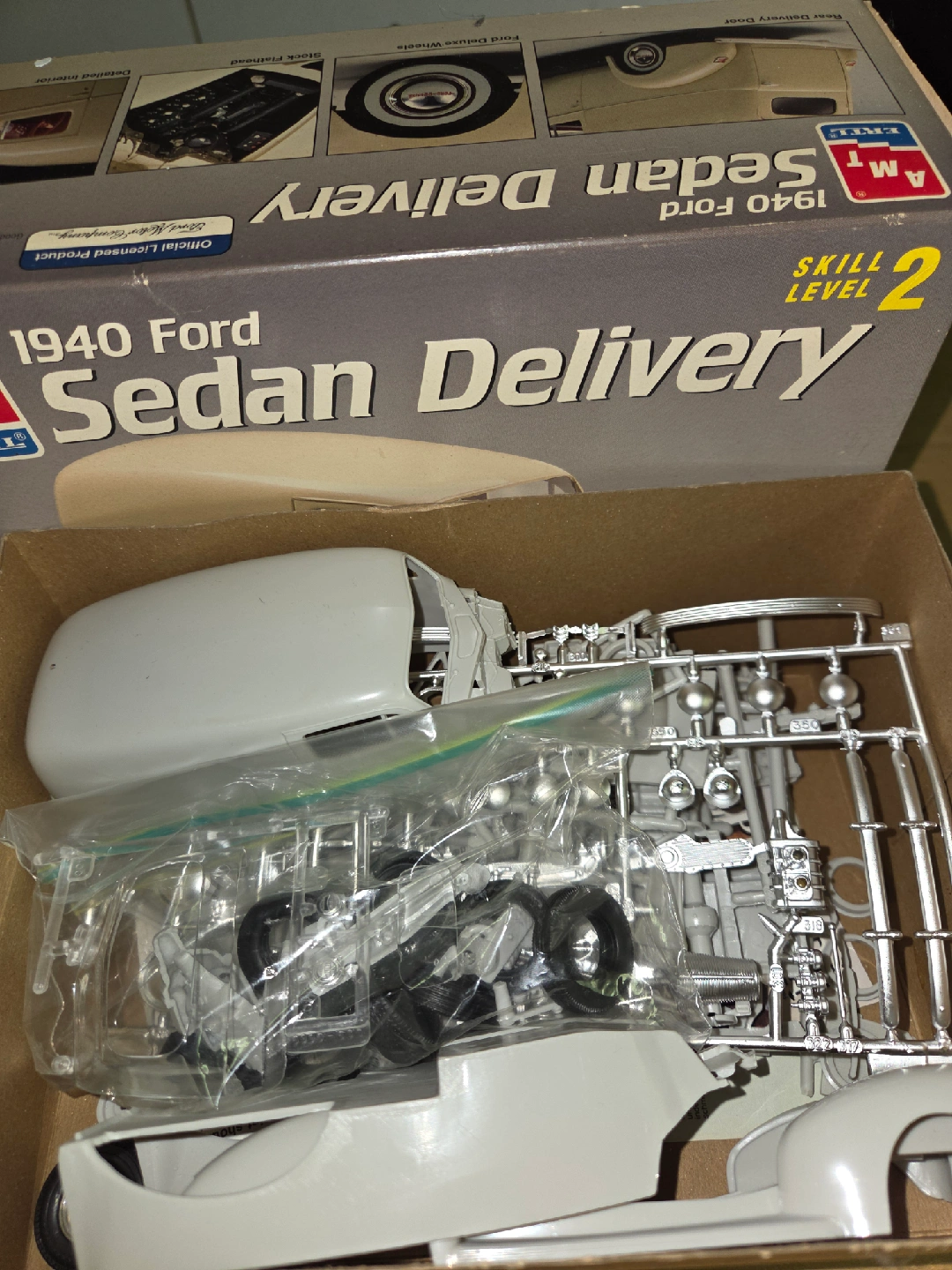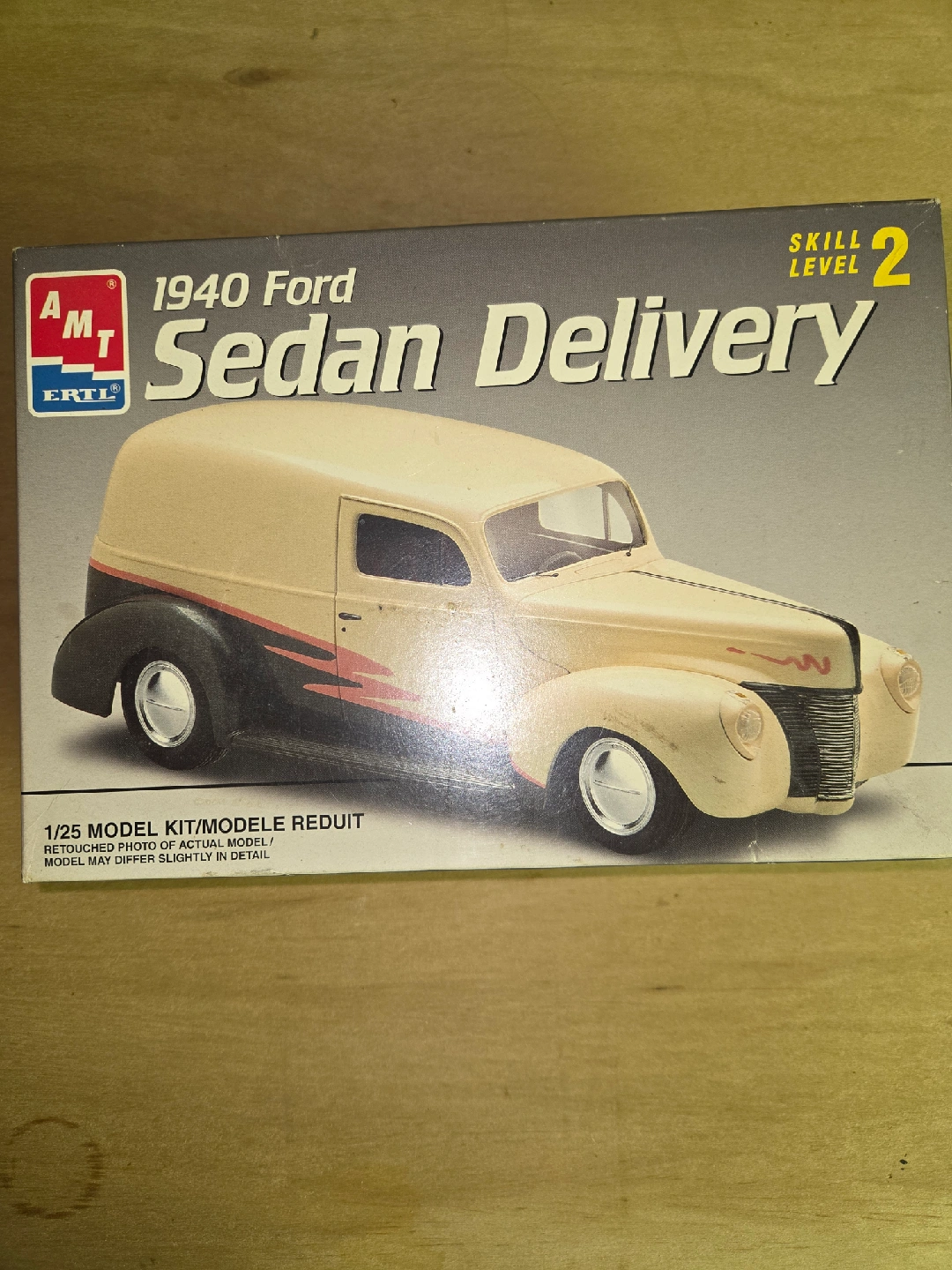 Selling an AMT 1940 Ford Sedan Delivery model kit. It's a skill level 2 kit and appears to be complete in the box! Great for model car enthusiasts