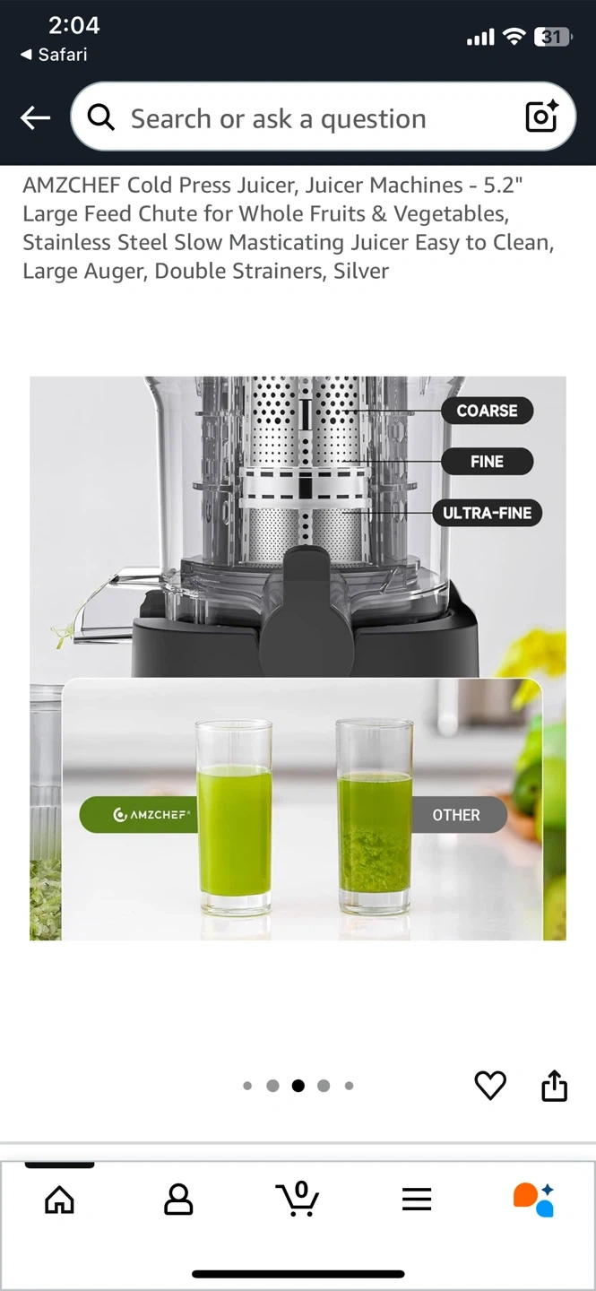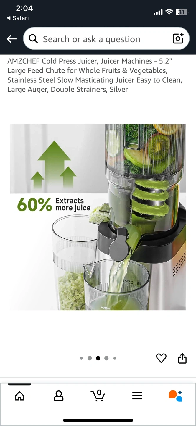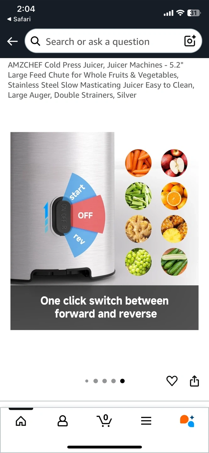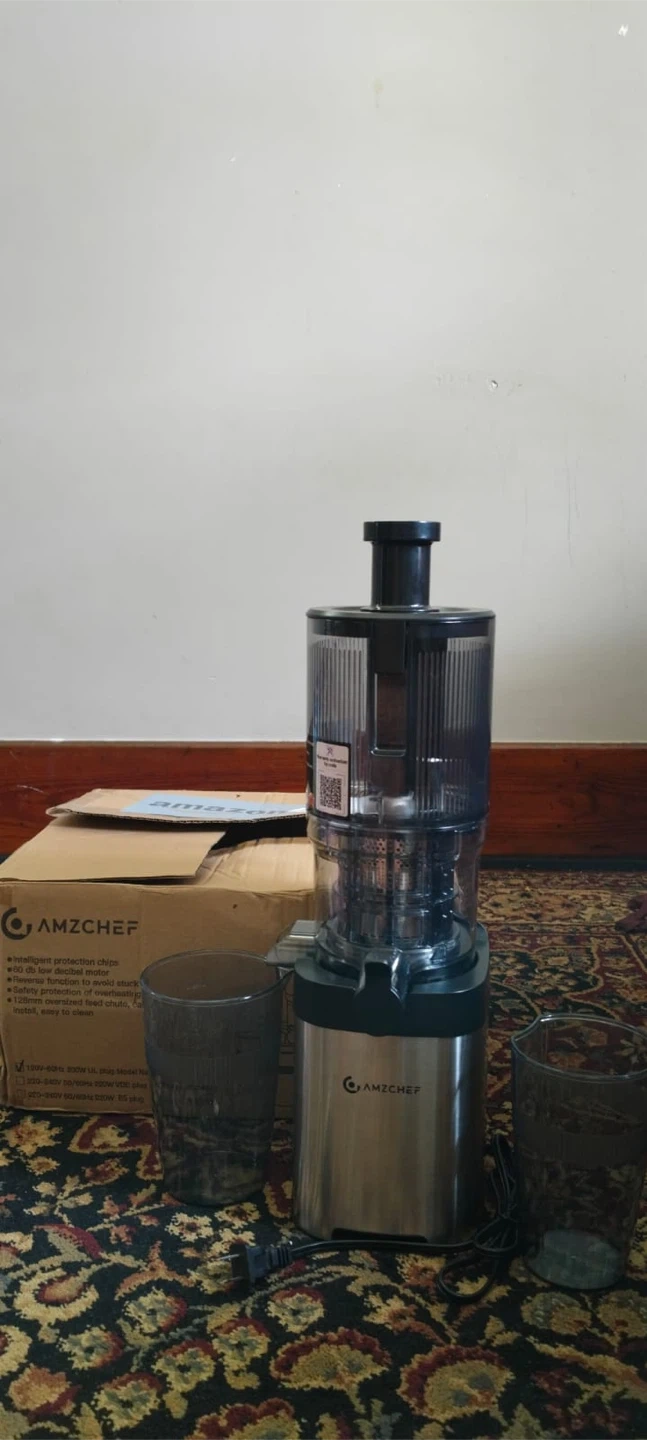 Brand New - Selling an AMZCHEF Cold Press Juicer in excellent condition! This juicer features a 5.2-inch large feed chute, perfect for whole fruits and vegetables. It's a slow masticating juicer that's easy to clean and comes with a large auger and double strainers. It's silver and stainless steel so it's easy to match to your kitchen!