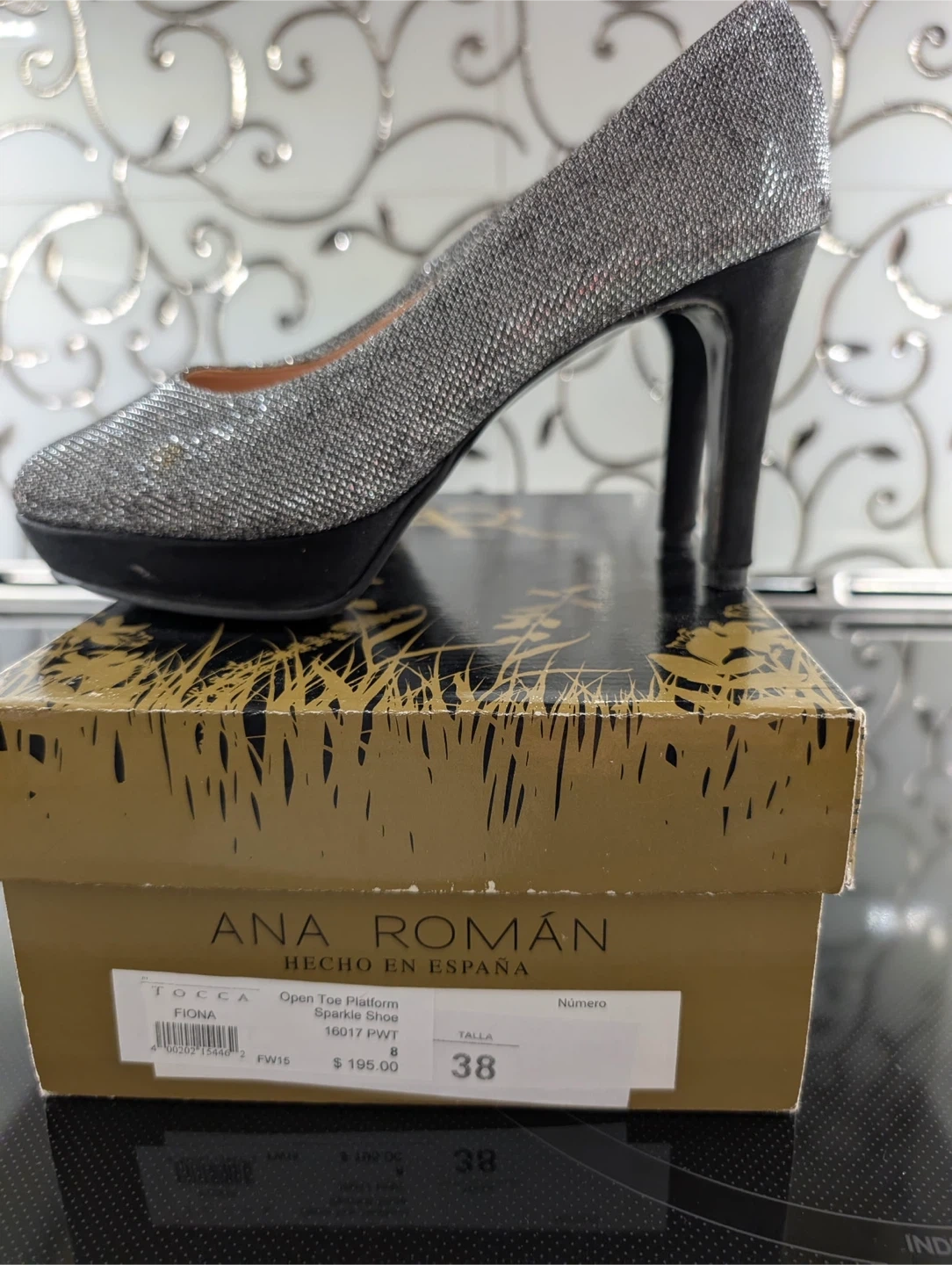 Selling a pair of Ana Roman sparkle platform heels. They are an open toe style and come in size 38. The original box is included! Originally bought for $195.00