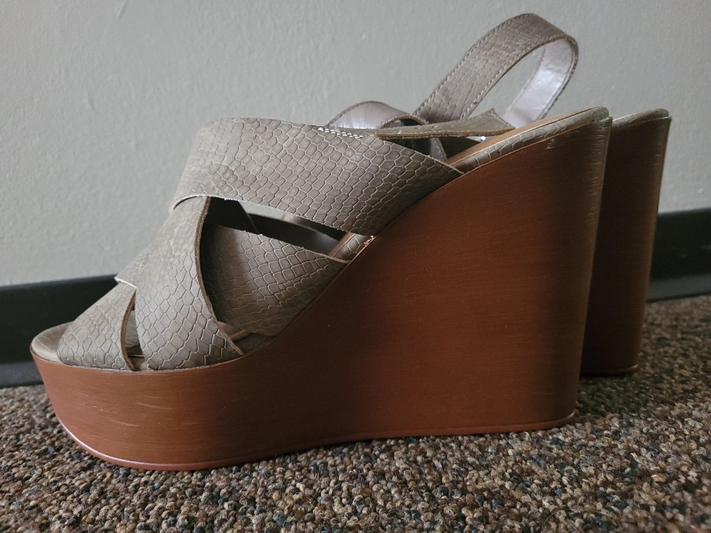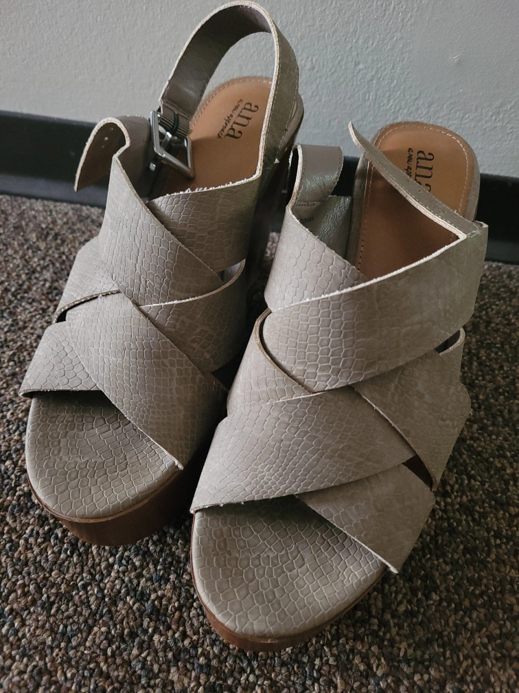 These ANA platform wedge sandals are in great condition and ready for a new home! They feature a criss-cross strap design and a comfortable platform for added height. The size is 10