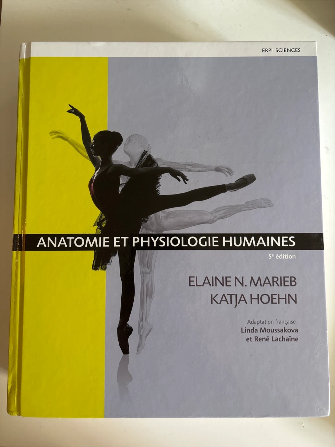 Selling a copy of 'Anatomie et Physiologie Humaines' by Elaine N. Marieb and Katja Hoehn. This is the 5th edition, adapted by Linda Moussakova and René Lachaîne. Perfect for students or anyone interested in human anatomy and physiology in the French language.