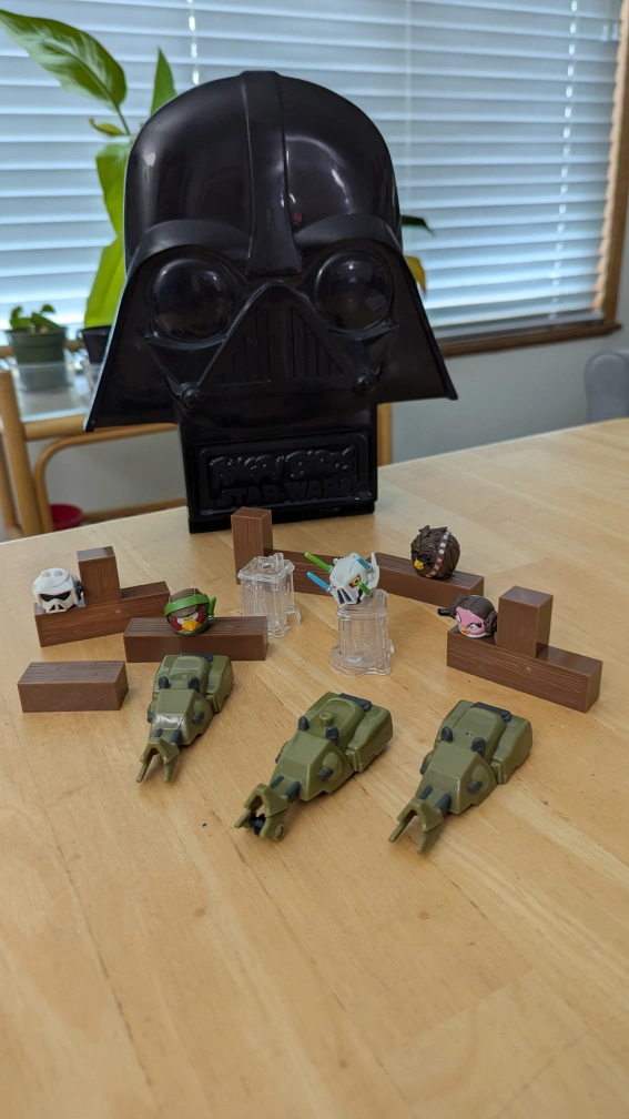 Embark on a galactic adventure with this Hasbro Angry Birds Star Wars game! ✨This is a custom set that includes the partially complete Endor Chase set (missing ramp and 2 blocks) + 3 Extra Telepods + One extra Telepod Base + Carrying case. (Complete set description below) Custom Set features: ✔️ Darth Vader Pig Carrying Case ✔️ 5x Telepod figures (Endor Luke Skywalker, Chewbacca and Leia Birds + Bike Scout Trooper and General Grievous Pigs) ✔️ 3x Speeder Endor Bikes (1x with friction powered wheels + 2 for mount) ✔️ 2x Telepod Bases Viewer Scanner Magnifier Stand ✔️ 6x Scenario block pieces Fans of both Angry Birds and Star Wars will enjoy and have tons of fun with this fusion of iconic characters. Whether for display or play, this set promises to be a standout addition to any collection.