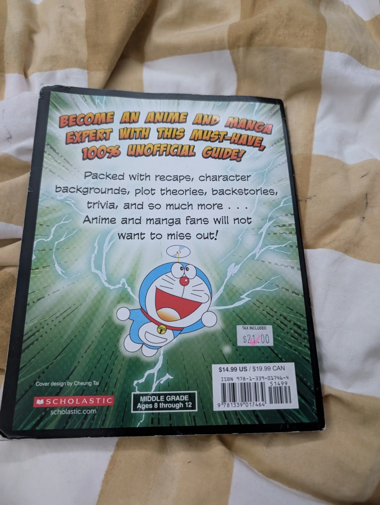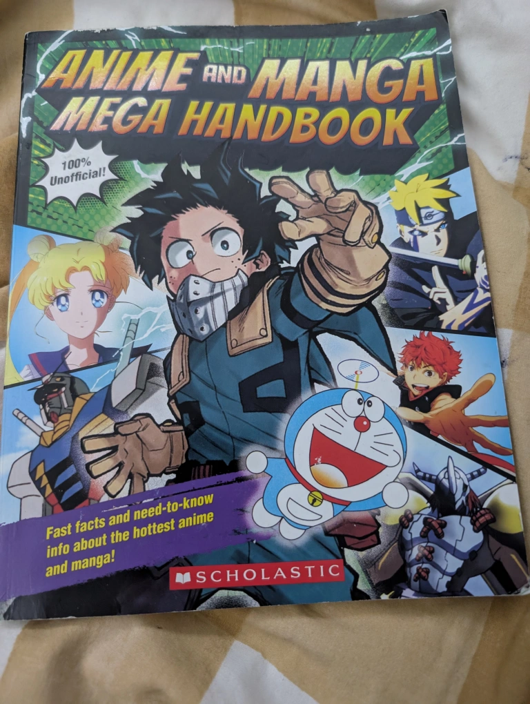 Selling an Anime and Manga Mega Handbook by Scholastic! It's packed with fast facts and need-to-know info about the hottest anime and manga! It's also filled with recaps, character backgrounds, backstories, and trivia. It's recommended for middle grade, ages 8 through 12. Originally bought for $21.00