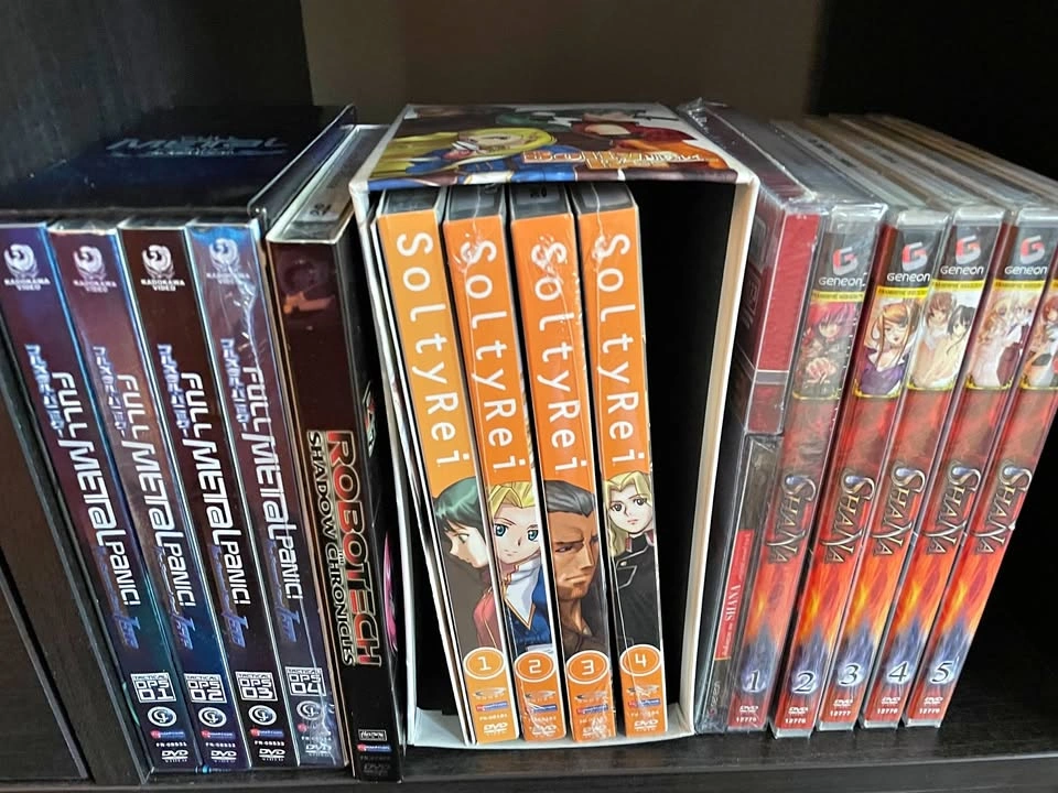 Most of these are still sealed, the others have been lightly played, and all are in great condition. There are some rare, and hard to find ones here. I'd make a GREAT deal if someone takes ALL of them. I'm listing the titles, but some are sets, and some are individual volumes. Anime (partial list): • Full Metal Panic Set (vol. 1-4) • Robotech: Shadow Chronicles • Solty Rei 1-4 (with collector case) • Shakugan no Shana (vol. 1–5) (first one is limited, with OST / boxed ) • Last Exile • Grave of the Fireflies • Witch Hunter Robin • Love Hina (set, maybe not ‘original’) • RahXephon • Excel Saga • Angel Burst (vol 1-2) • Perfect Blue • Natural • Midnight Panther • Wicked City Special Edition • The Animatrix • Spirited Away • Metropolis • Gasaraki • Planetes • Afro Samurai • Comic Party (vol. 1) • Final Fantasy Advent Children (Limited Edition Collector’s Set)