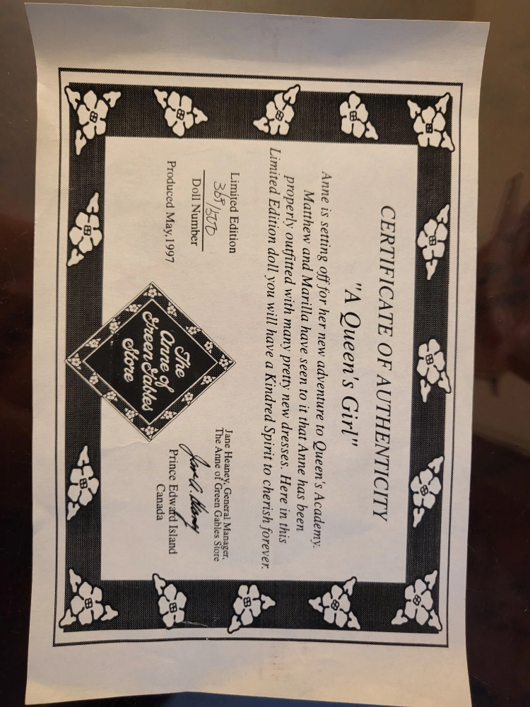 Selling an Anne of Green Gables Special Edition Porcelain Doll by the Anne of Green Gables Store! It comes with its original box and stand. This doll is a limited edition with only 500 produced. It was produced in May 1997. Approx. 18" tall. Very high quality, beautiful doll, great for collection and for gifting to children.
