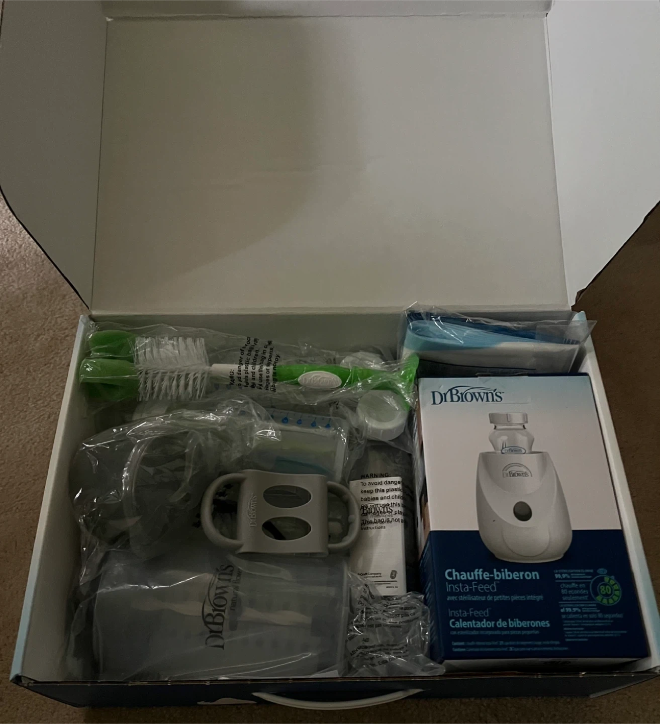 Only one bottle and a couple of pacifiers are missing, everything else is included, unopened, and unused