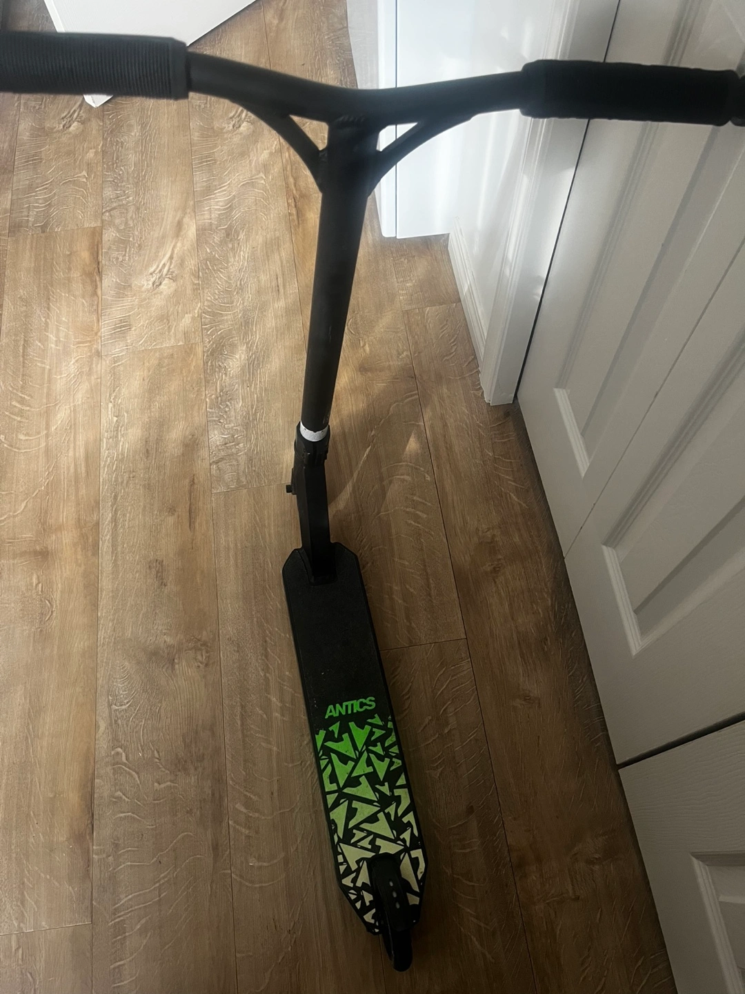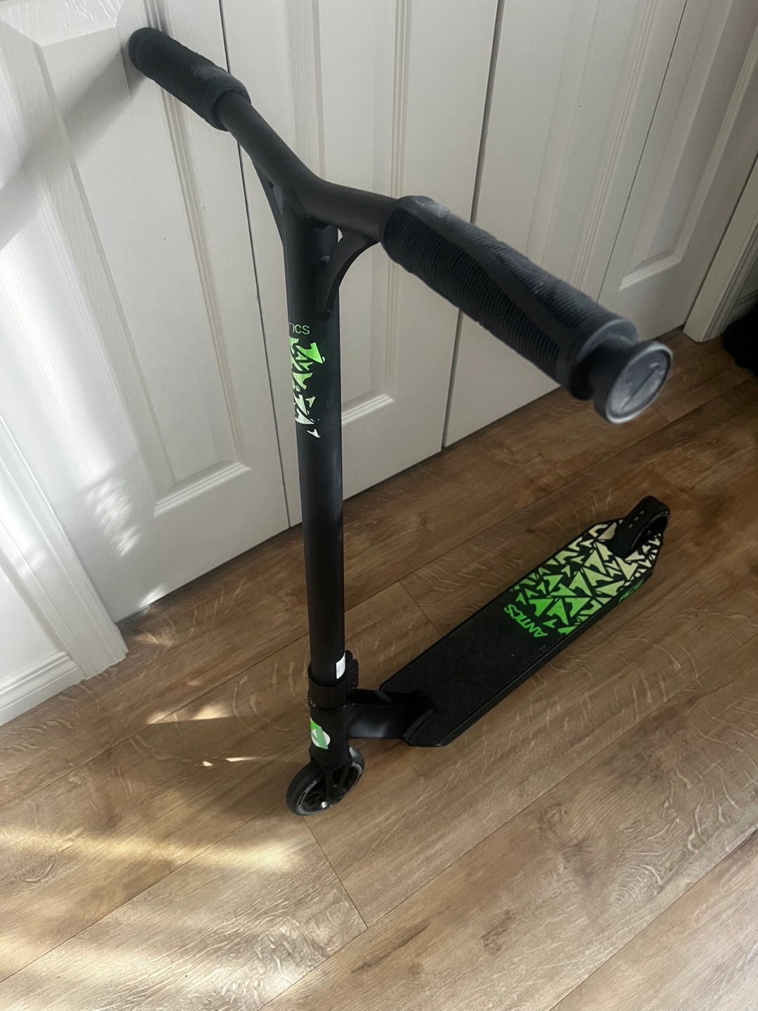 Selling a used Antics stunt scooter in black and green. It's in good condition and ready for some action! Perfect for anyone looking to practice their tricks and stunts
