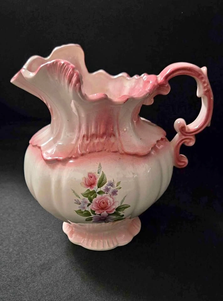 Excellent condition with no chips or cracks. 1975 Arnel's pink pitcher jug with floral embellishments. Pick up northside port coquitlam