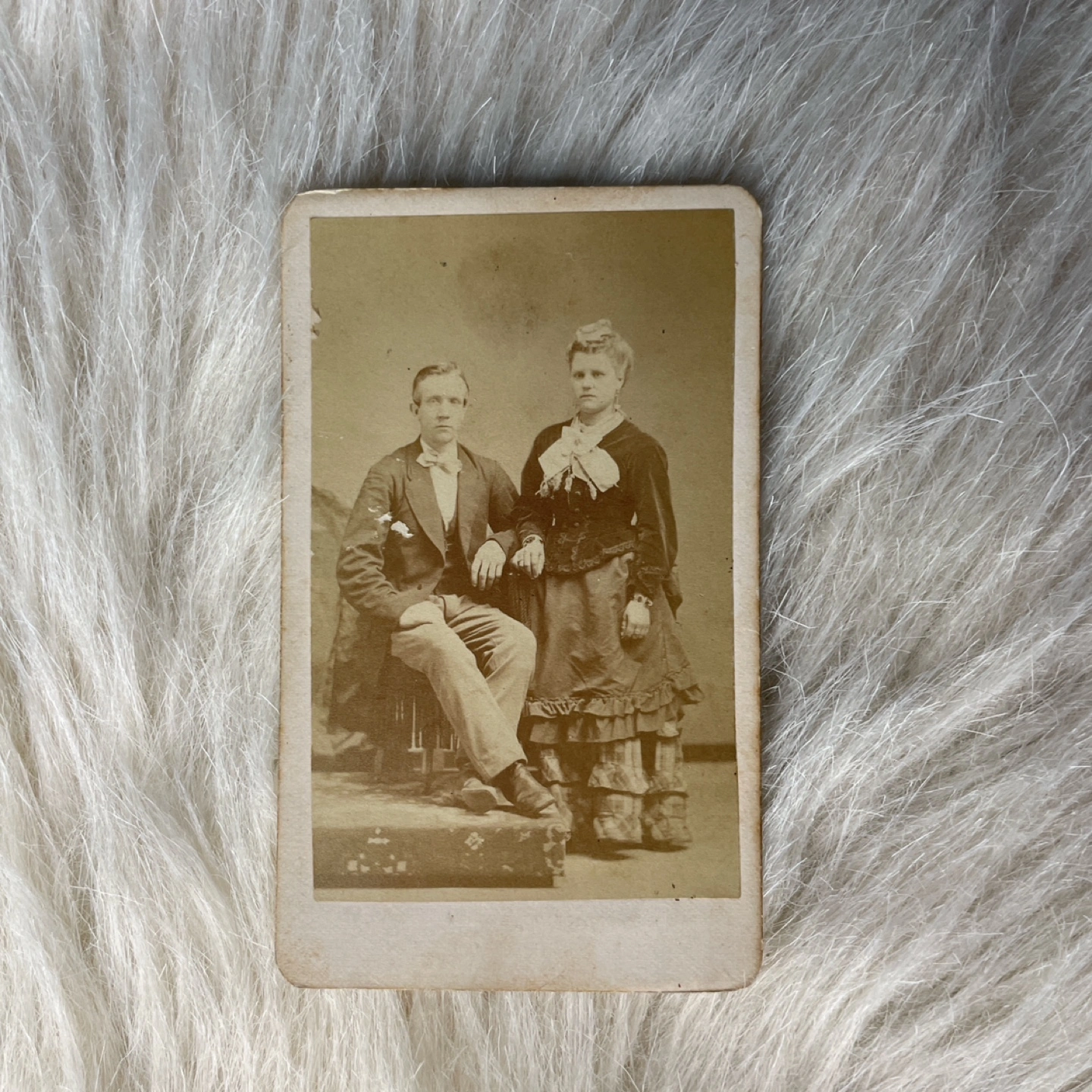 Antique cabinet card of a couple. The card is in fair condition, showing age and wear. The photo is clear.