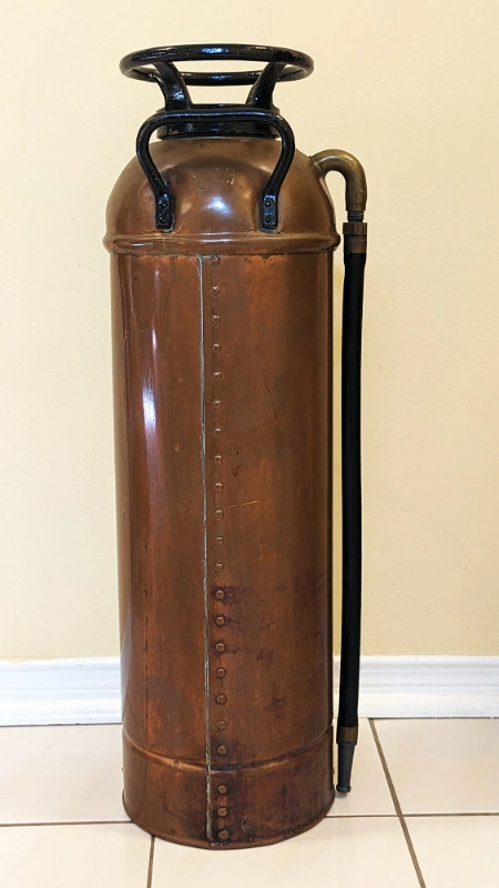 If you are seeing this Ad, then this item is still available This sale is for 1 very nice and clean - Antique Copper and Bronze Fire Extinguisher. Meaures: 24" H x 7.25" W Pick-up in Pickering ONLY This item comes from a smoke-free home.
