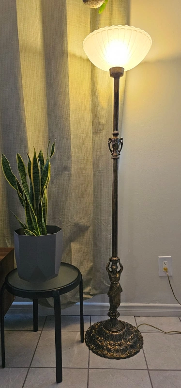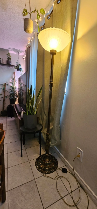 Selling a beautiful antique-style floor lamp. It has a lovely ornate base and a fluted glass shade. It would look great in any living room or bedroom! Pick up nearby Algonquin college/ Longfields, Barrhaven, Ottawa