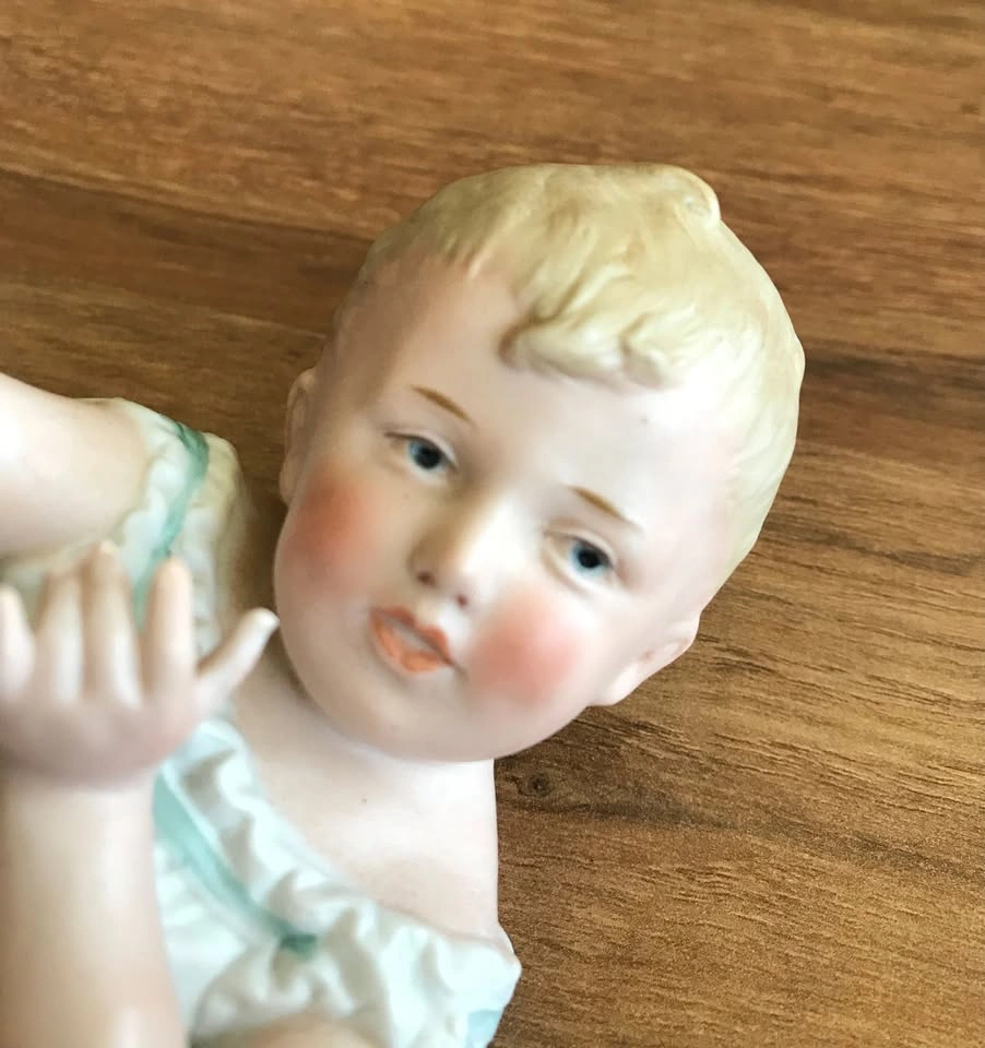 🧡 Vintage Chubby Cheeked Ceramic Boy 9” Figurine Set