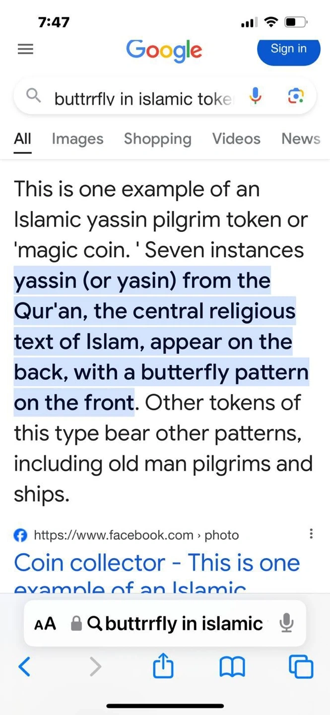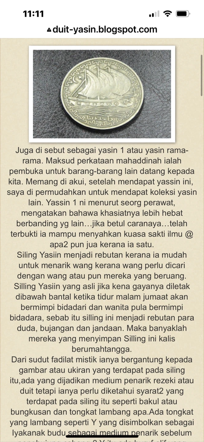 Antique Islamic Yasin Coin heart of Quran Aayat