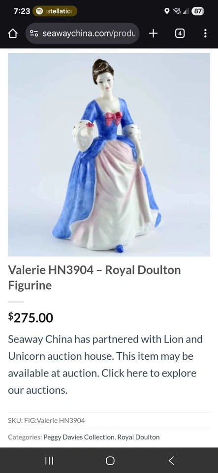 Excellent condition, no cracks. Bone china. Peggie Davis' 50th Anniversary figure. Pick up northside port coquitlam