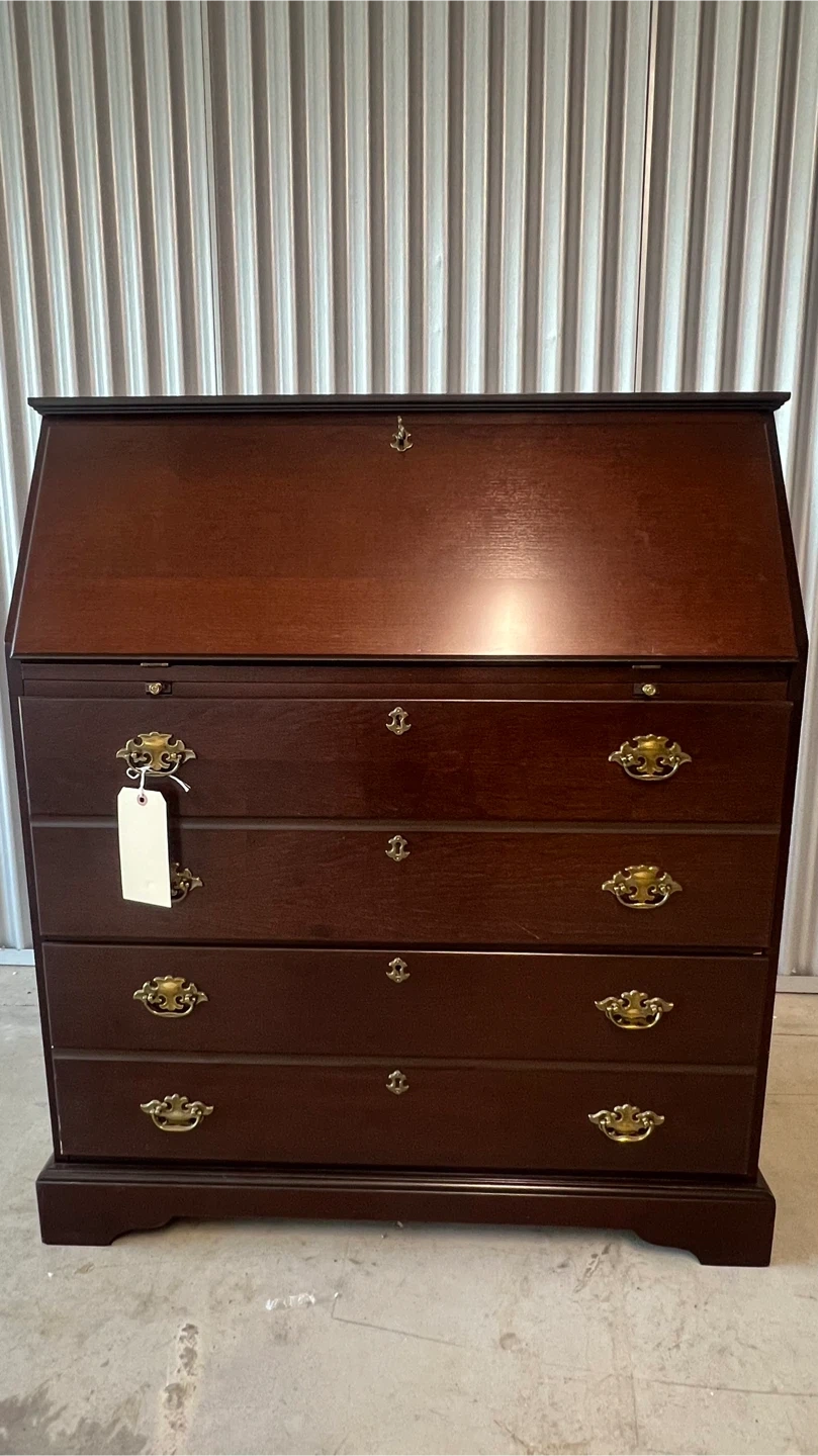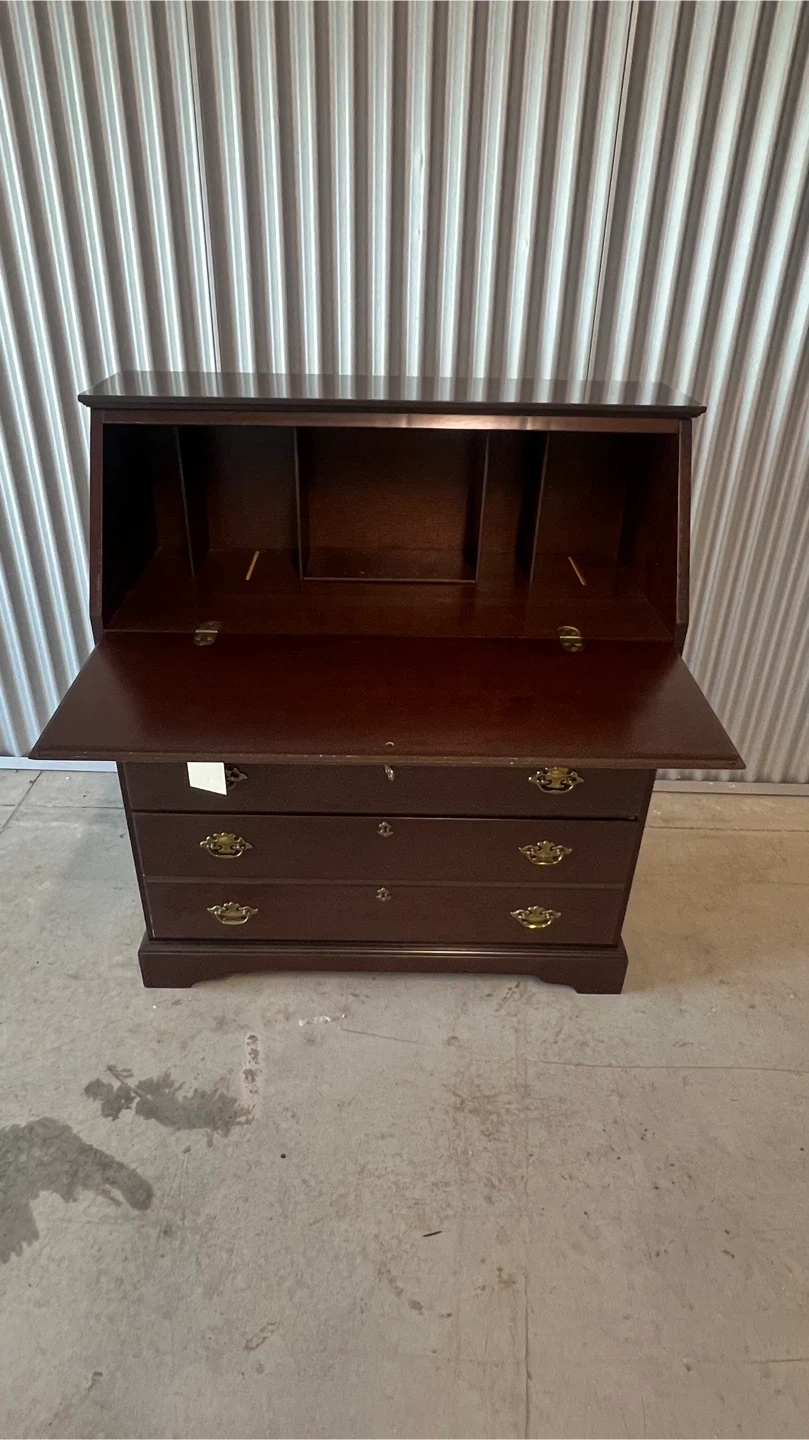 Here's a beautiful antique secretary desk, perfect for adding a touch of elegance to your home office or living space It features a rich mahogany finish and classic design Plenty of storage with multiple drawers and a fold-down writing surface It's in great condition and ready for a new home