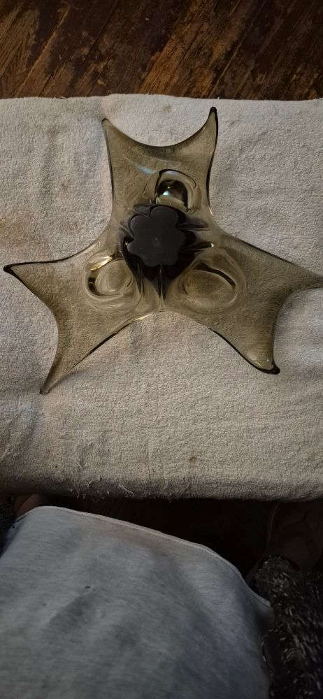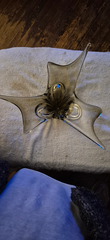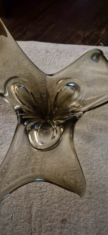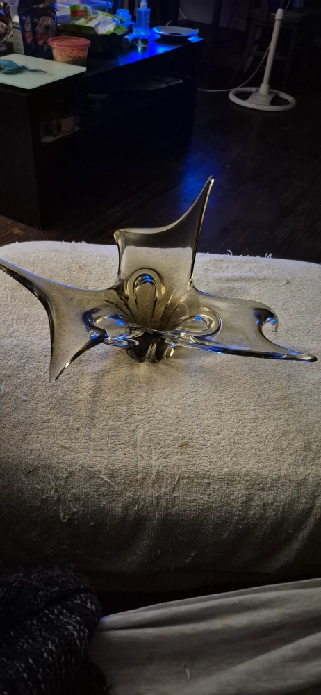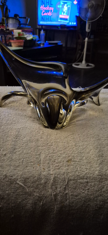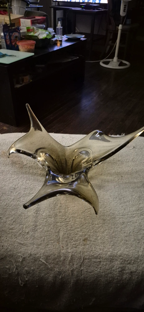 Unique decorative glass bowl, perfect as a centrepiece or accent piece for your home. It has a lovely shape and would look great on a table or shelf.