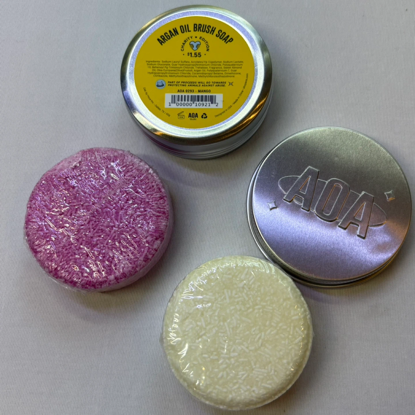 Keep your makeup brushes and sponges clean and conditioned with this AOA Argan Oil Brush Soap set. The tin includes one full-size brush soap in the scent Mango, plus one additional soap in a berry scent. These solid brush cleansers effectively remove product buildup while nourishing bristles with argan oil for a soft, long-lasting finish. Details: New in package! Brand: AOA Studio Includes: 1 metal tin with Mango Argan Oil Brush Soap + 1 refill soap (scent not labeled) Color: Yellow, pink Ideal for cleaning makeup brushes, sponges, and beauty tools Condition: New, unused Compact and travel-friendly design Cruelty-free and part of AOA’s Charity Edition line See photos for measurements. Flaws: none noted Cross posted. Keywords: AOA brush cleaner, argan oil soap, AOA Studio, makeup brush cleanser, solid brush soap, cruelty-free beauty, affordable makeup tools, ShopMissA, brush cleaning tin, vegan makeup cleaner, beauty hygiene essentials Winnipeg - Pick up only (Located 2 blocks west of Polo Park). Shipping options available through other platforms message me for details.