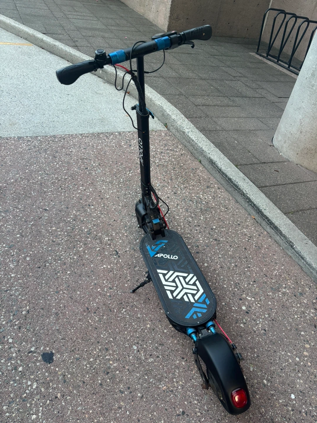 Excellent condition. Powerful motor. Large wheels. Foldable design. Great for commuting or recreation. The scooter is $1100 actually I change both tires non flat tires, they will never go flat, can be Changed every 2 years. I am the original owner and have prove, it is registered with vpd in case gets stolen. Let me know if you want to come look at it. It freshly tuned up I don’t accept trades.
