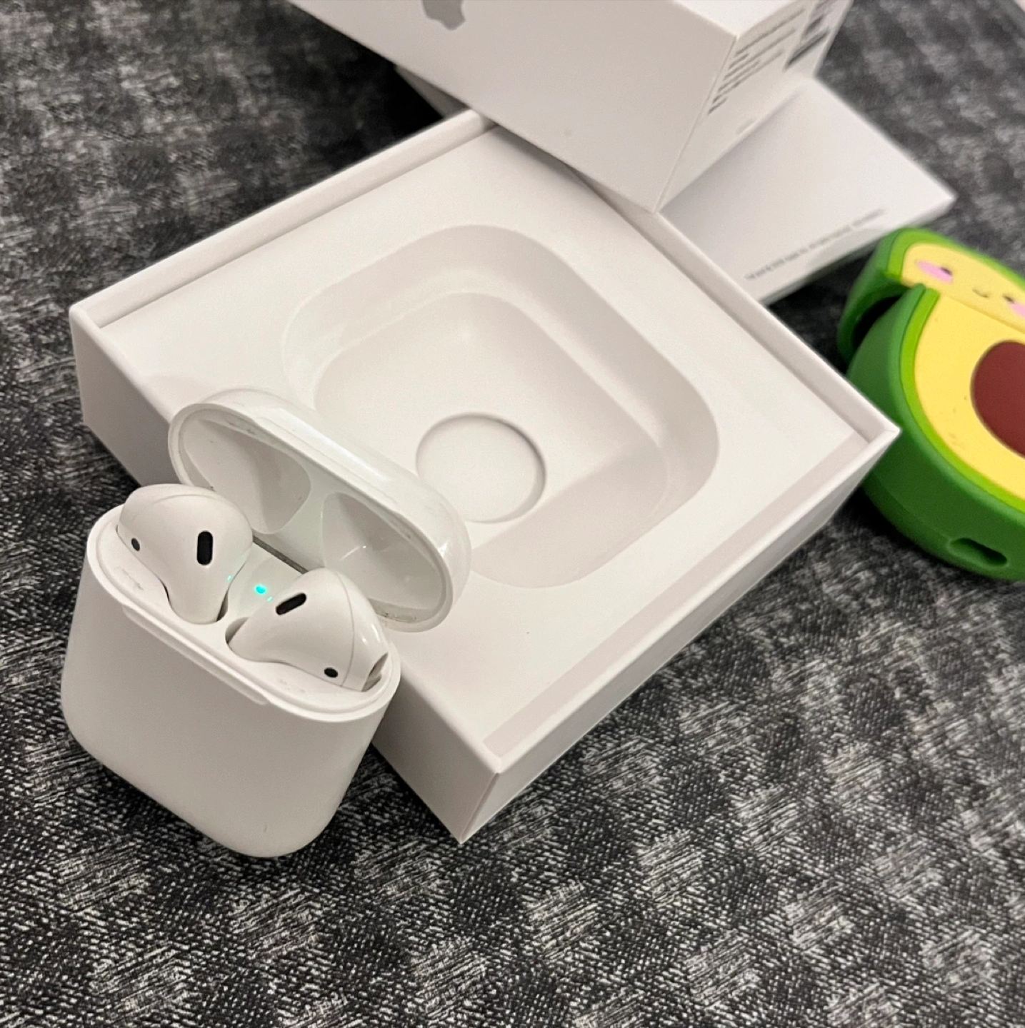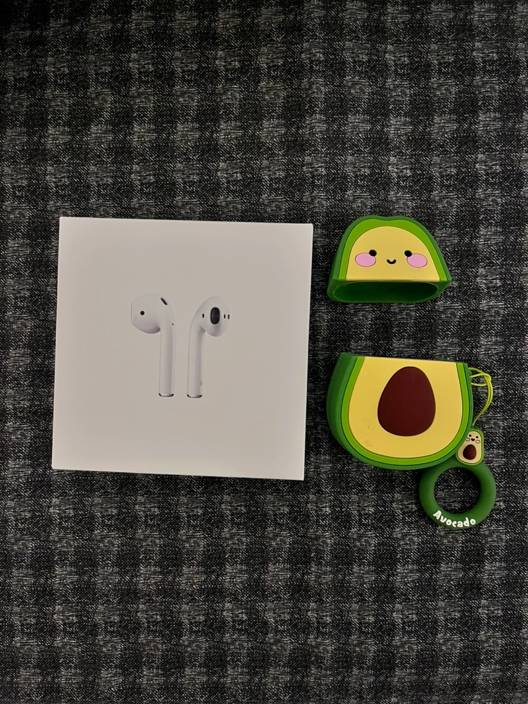 Selling a pair of Apple AirPods 2nd generation! They come with the original box and a cute avocado case to keep them safe and stylish. Great for listening to music, podcasts, or taking calls on the go!