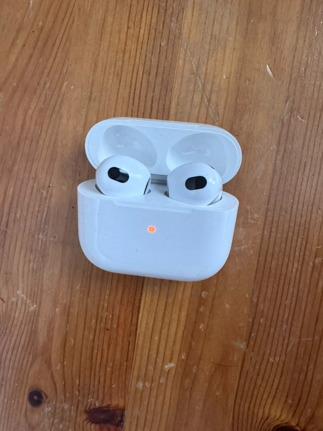 Selling a pair of Apple AirPods (3rd generation). They are in great condition and come with the charging case. These AirPods are lightweight and portable, perfect for everyday use!