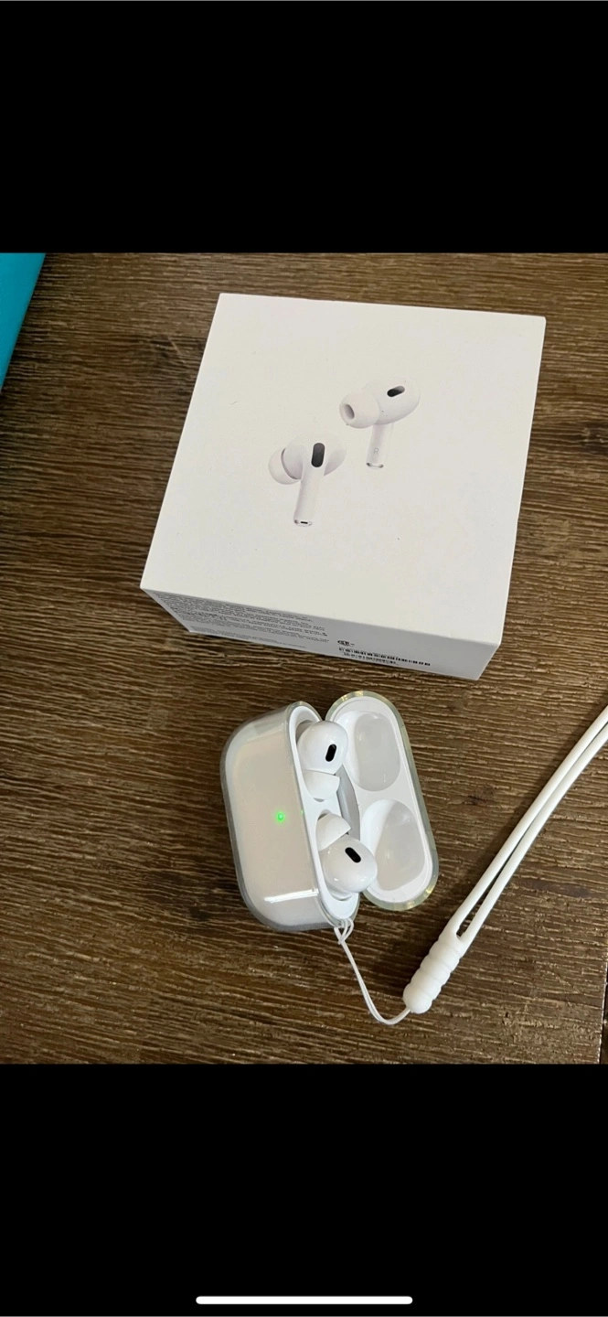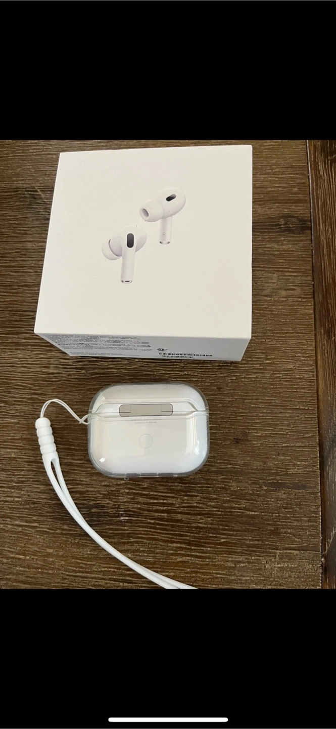 AirPods Pro set in the original box with a protective case and a lanyard. A wonderful way to listen to music on your daily commute.