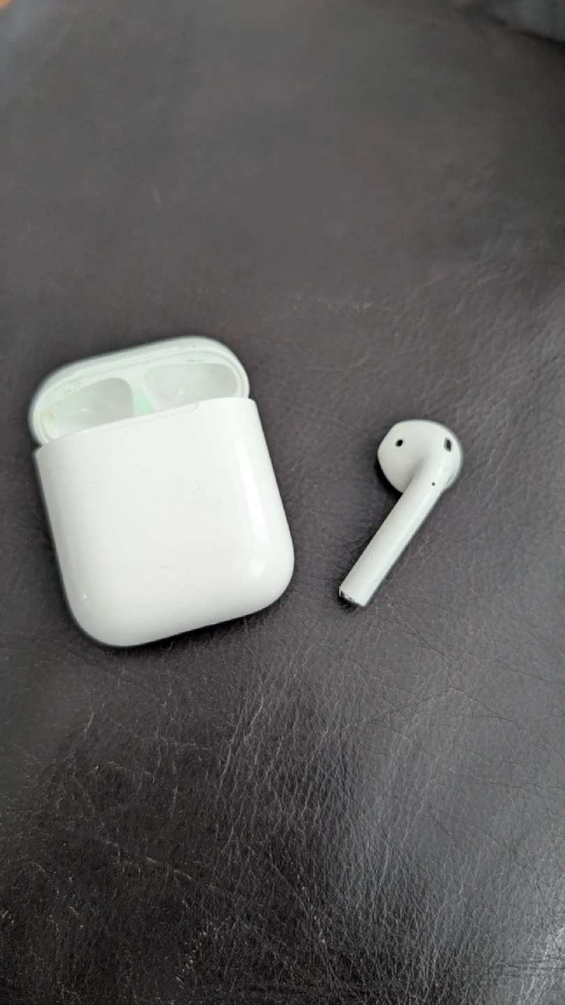 Selling a singel left of Apple AirPods firts generation with the charging case. Model number on the case is A1602. Comes with the original box missing right side