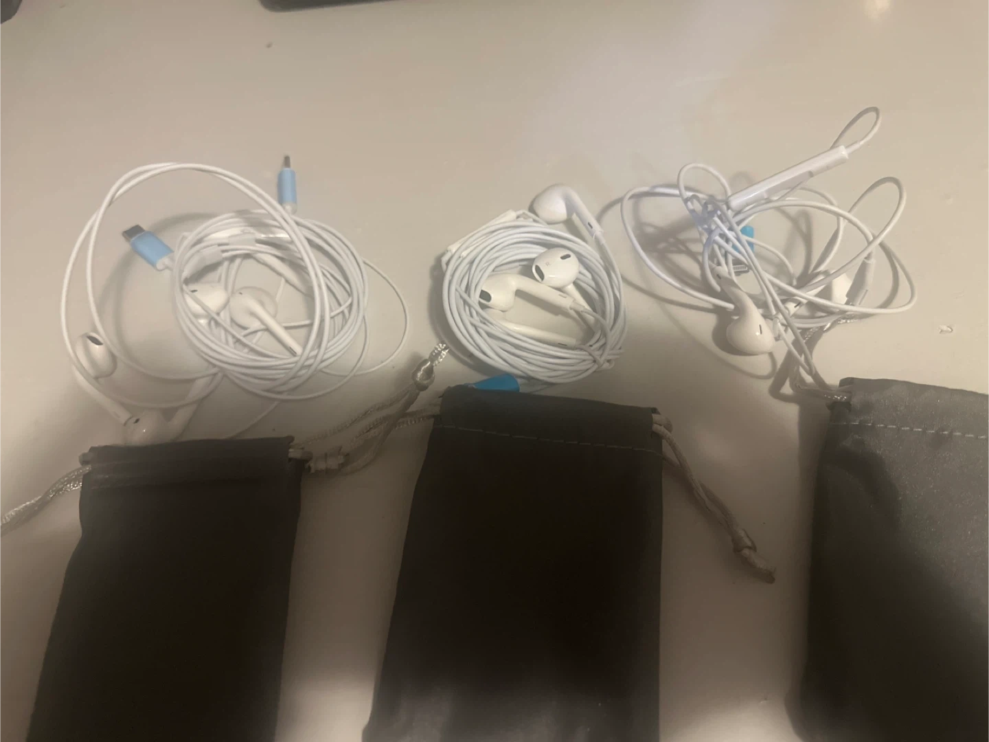 Selling these Apple EarPods. They come with both the 3.5mm headphone plug and lightning connector versions. Each set comes with its own carrying pouch, some of the earbuds even work on Samsung/android.