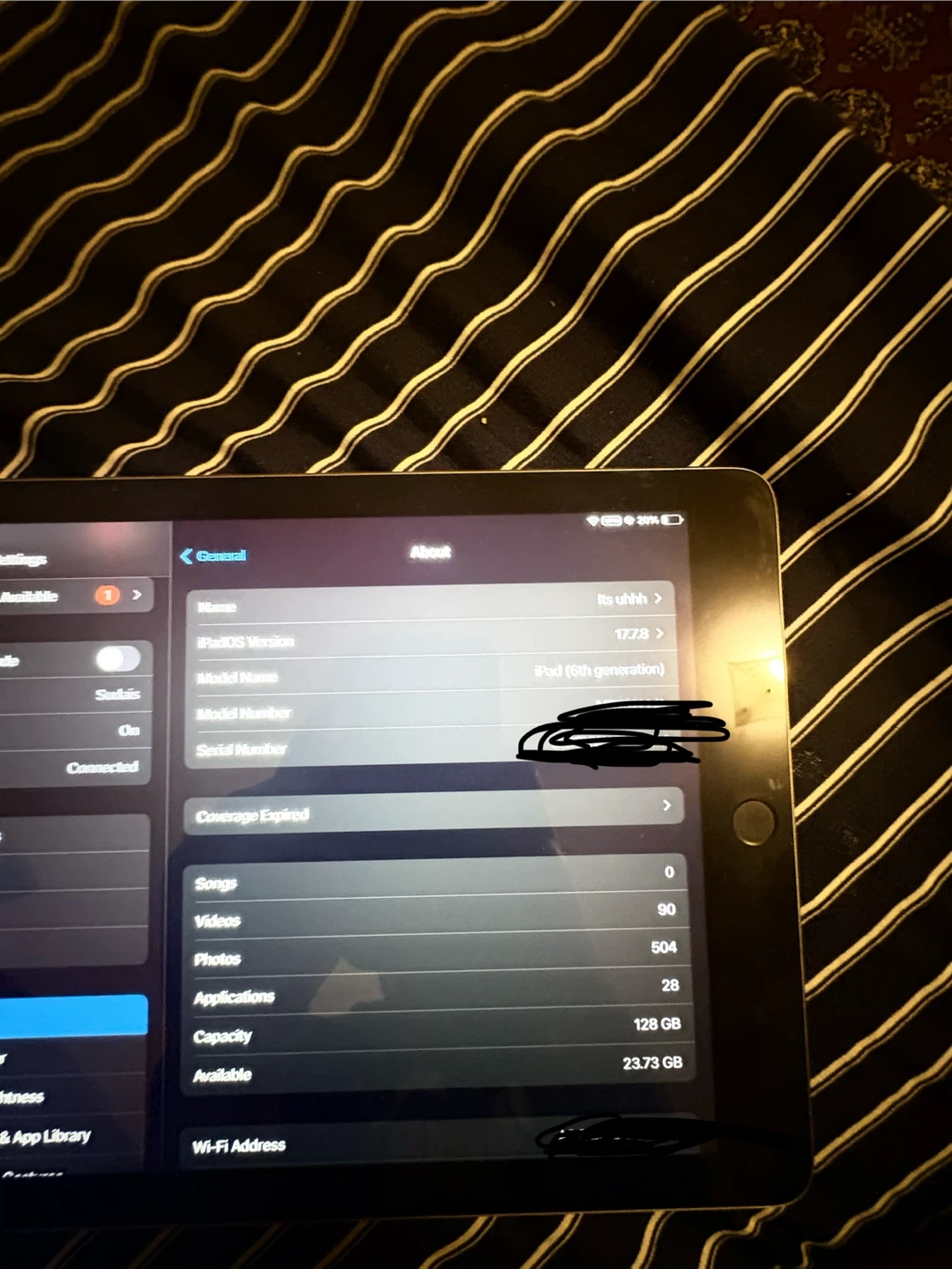 Selling an Apple iPad (6th generation) with 128GB of storage. It's in great shape and ready for a new home! It has iPadOS version 17.7.8