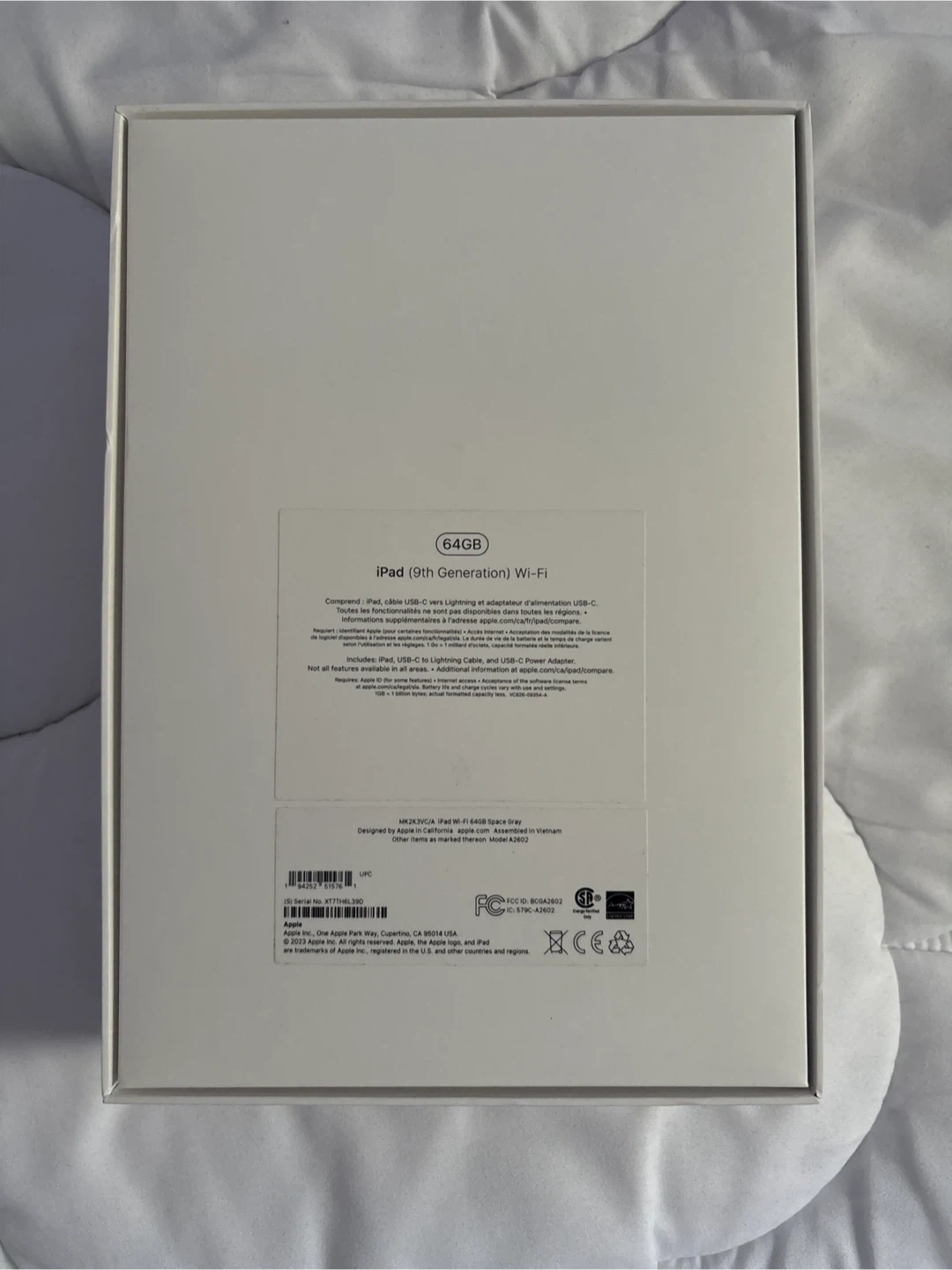 Selling an Apple iPad 9th Generation with 64GB of storage and Wi-Fi connectivity. It comes in Space Gray and includes the box. This model is the perfect everyday tablet!