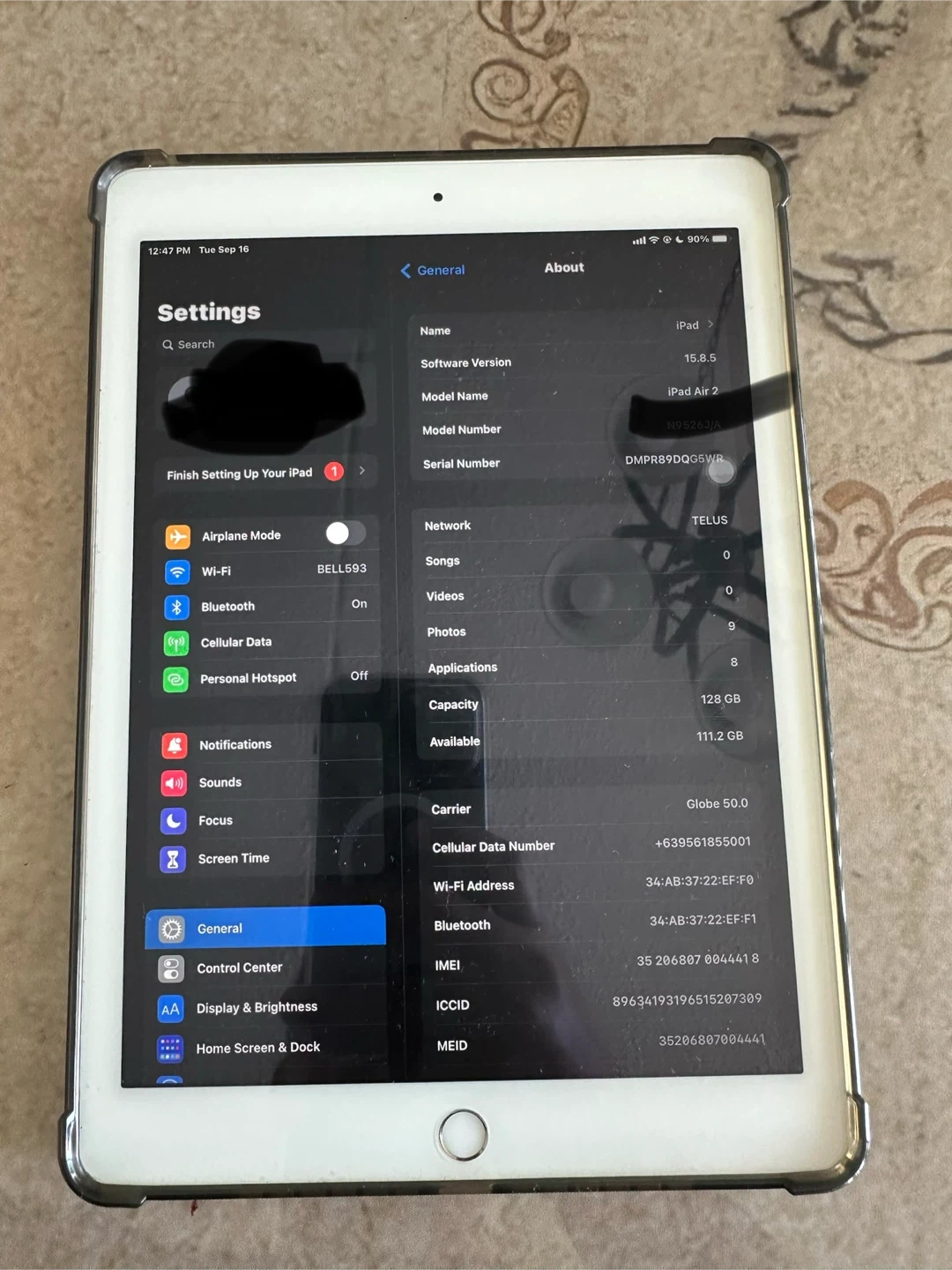 Selling an Apple iPad Air 2 wifi + cellular with 128GB of storage. It's in good condition and ready for a new owner!