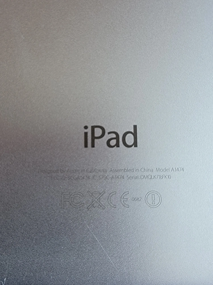 Selling an Apple iPad, model A1474 for PARTS. IPad works but battery is not strong and home button needs to be pressed very firmly to function.