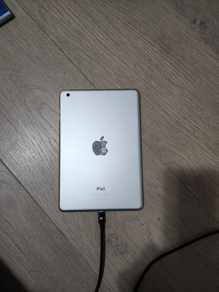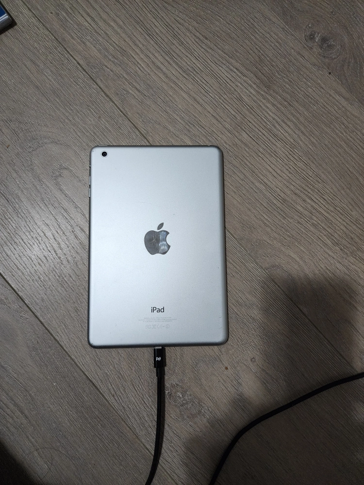 Selling an Apple iPad mini. It has 12.7 GB capacity. The model number is MD531C/A. There are some scratches on the edges.