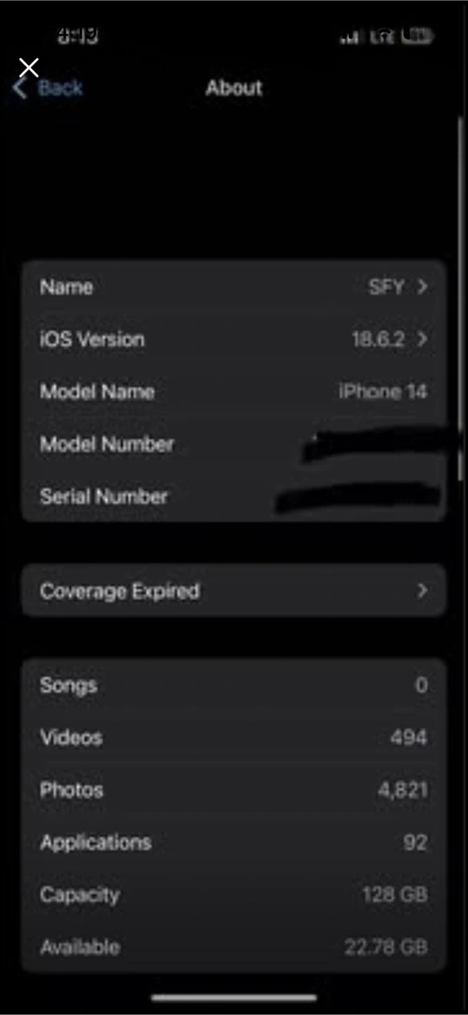Selling an iPhone 14 with 128GB of storage. The battery health is at 88%. It's in great condition and ready for a new owner!