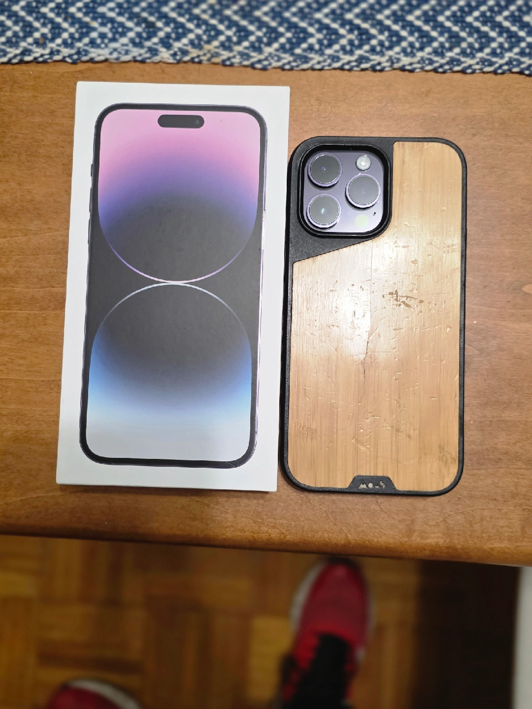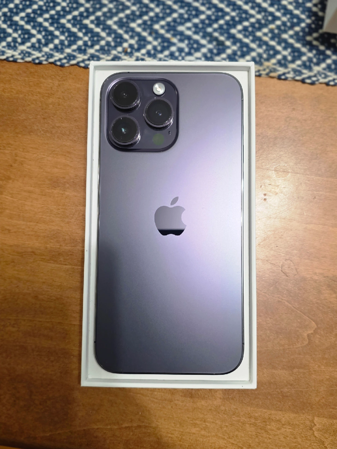Selling an Apple iPhone 14 Pro in Deep Purple. It's in great condition and comes with the box. If you're interested, send me a message! Storage: 128GB Battery health: 86 Case: included Selling because: I got a new phone.