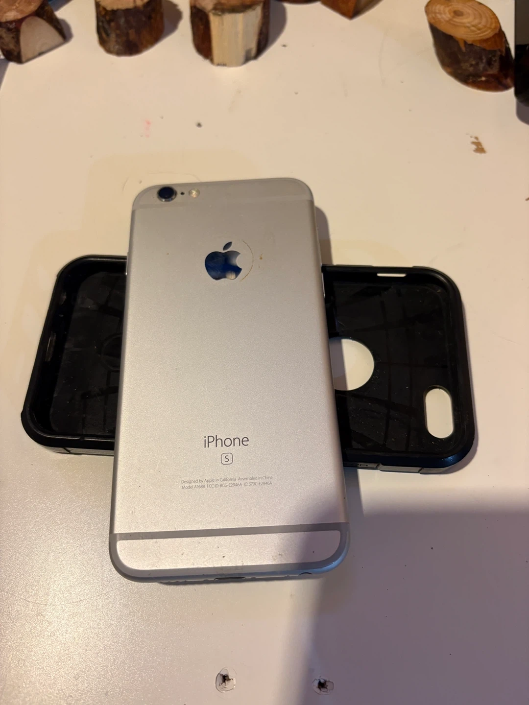 Selling a silver iPhone 6S. It comes with a case. There are some signs of wear.