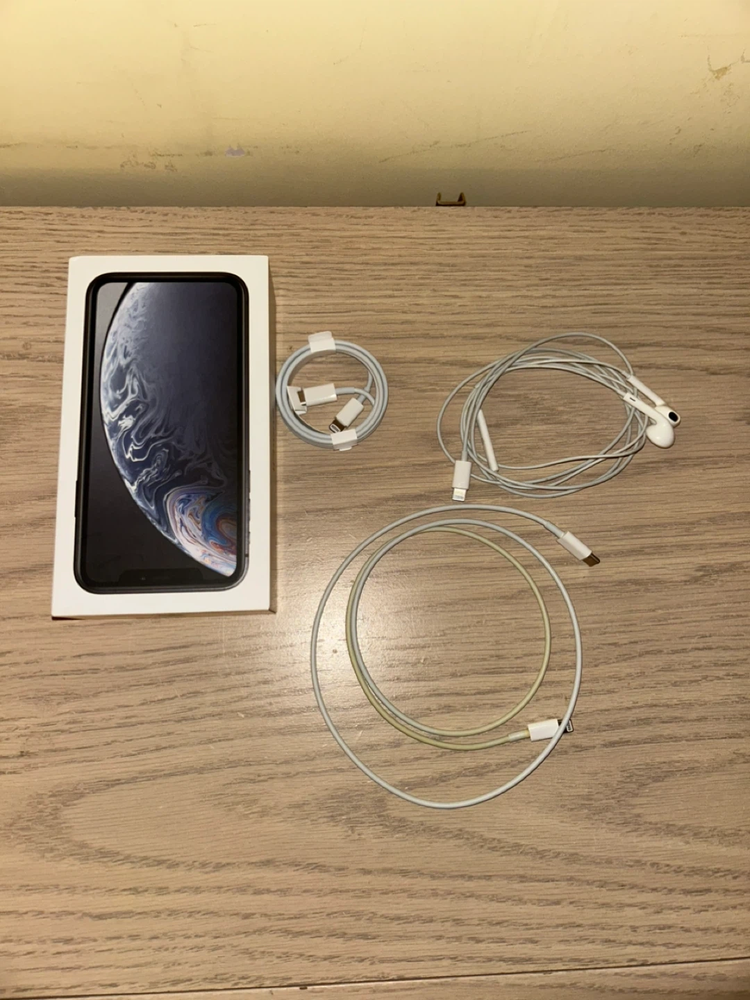 Selling an Apple iPhone XR box and orignal usb-c charging cables one is completely new and one completely new original apple earphones.