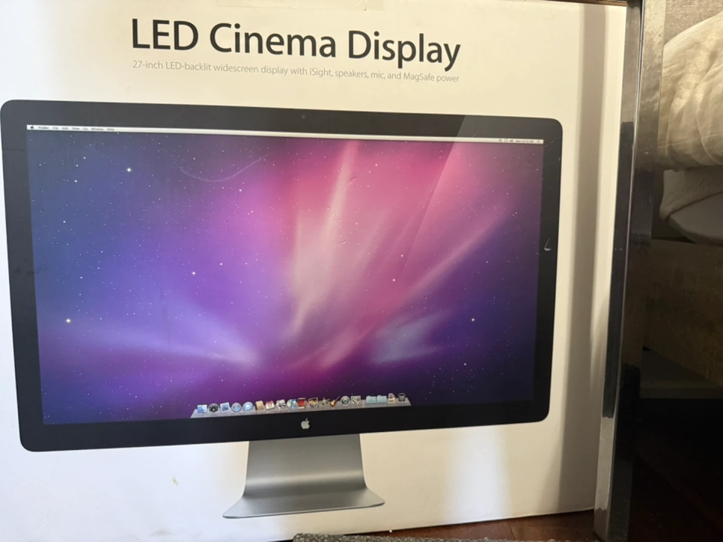 Selling an Apple LED Cinema Display, 27-inch LED-backlit widescreen display with iSight, speakers, mic, and MagSafe power. Comes in its box, It's in great condition and ready for a new home!