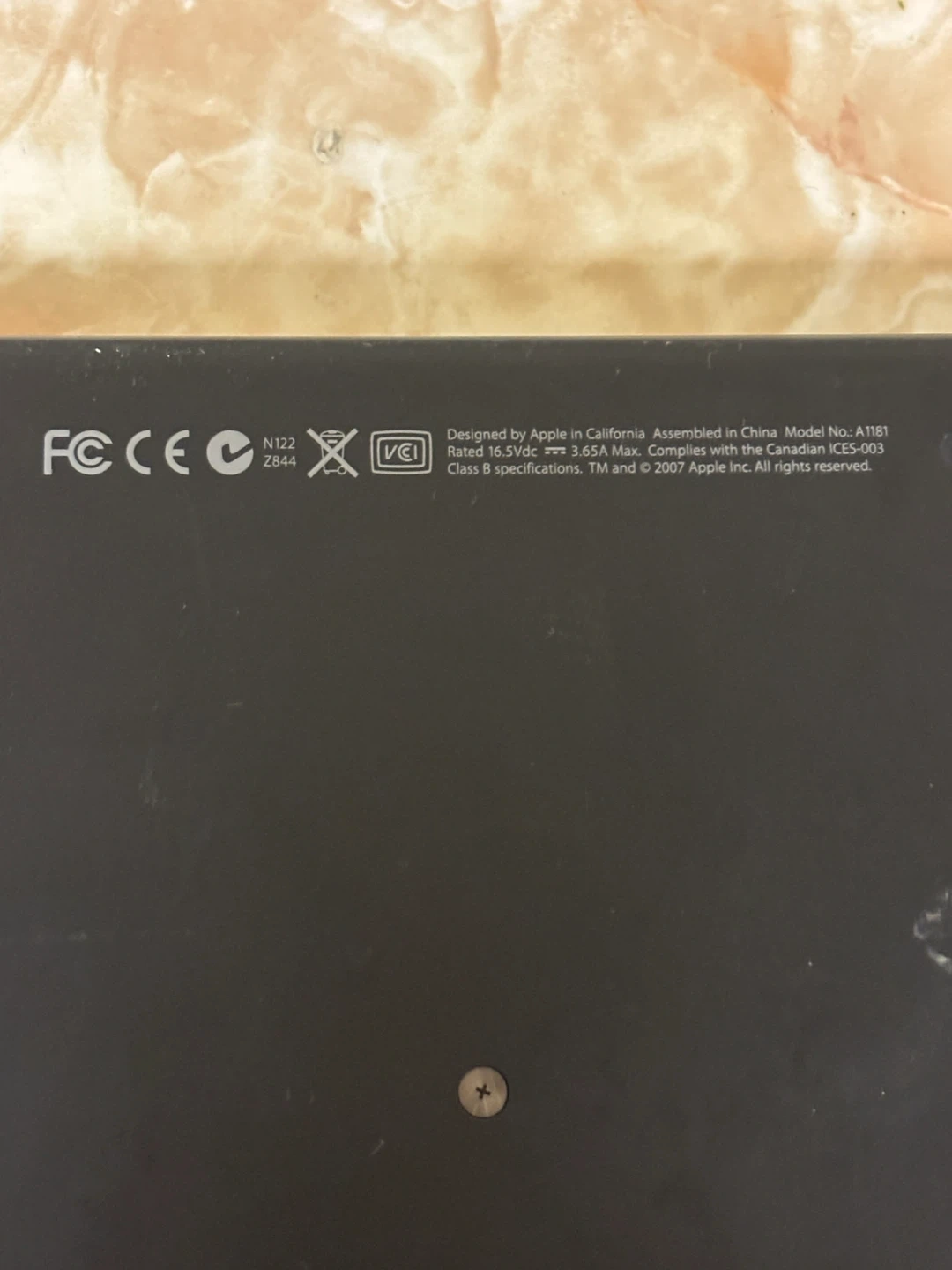 Selling a black MacBook, model number A1181 that still powers on. Please note that the screen is cracked as shown in the pictures and the charger is not included.