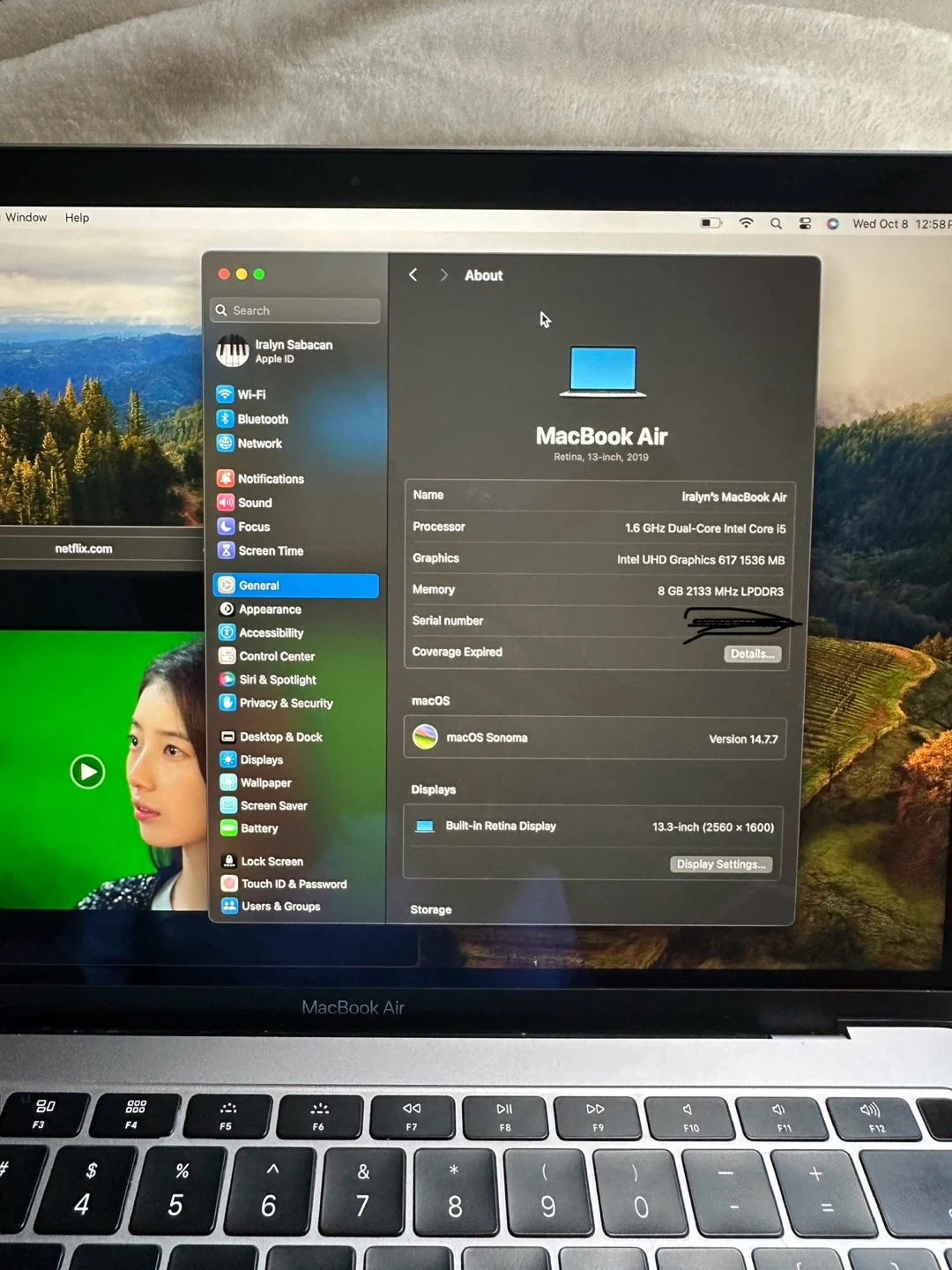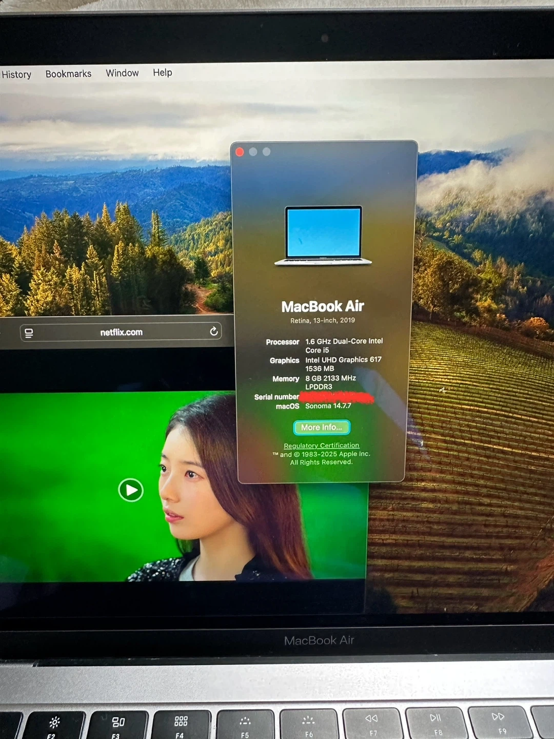 Selling a MacBook Air 13-inch from 2019. It has a 1.6 GHz Dual-Core Intel Core i5 processor and Intel UHD Graphics 617 1536 MB graphics. It also features 8 GB 2133 MHz LPDDR3 memory. Runs macOS Sonoma 14.7.7